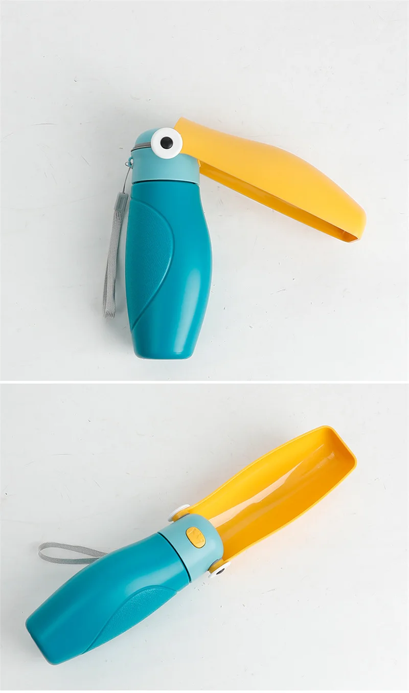 Spacious Yet Compact Design:big capacity ensures ample hydration for walks, hikes, or travel. Making it a must-have puppy essential and dog hiking gear for adventures Ultra-Portable & Pocket-Friendly-Take It Anywhere:The 180°collapsible dog water bowl,lightweight design-fits in pockets,backpacks,or car consoles.Perfect for dog beach essentials,road trips,or daily walks.Never leave home without this portable dog water bowl Adorable Toucan Shape-Stylish & Functional:Our bird-shaped pet water dispenser combines fun aesthetics with practicality.The ergonomic handle and collapsible water bowl for dogs,while the vibrant colors appeal to pet lovers. A travel water bottle for dogs that’s as cute as it is convenient One-Hand Operation - Effortless Hydration On-the-Go:Just unfold,tilt,and press the button for instant water flow-no spill water bowl for dogs! The angled tray prevents chin drips,and the lockable lid keeps water secure. Ideal for active dogs during walks,parks, or travel. A dog water bottle portable that’s simple for you, refreshing for them Leakproof - Safe & Reliable for Travel:Engineered with a tight silicone seal to prevent leaks in bags or cars. The wide mouth allows quick refills and cleaning. A must-have dog travel water bottle for worry-free adventures