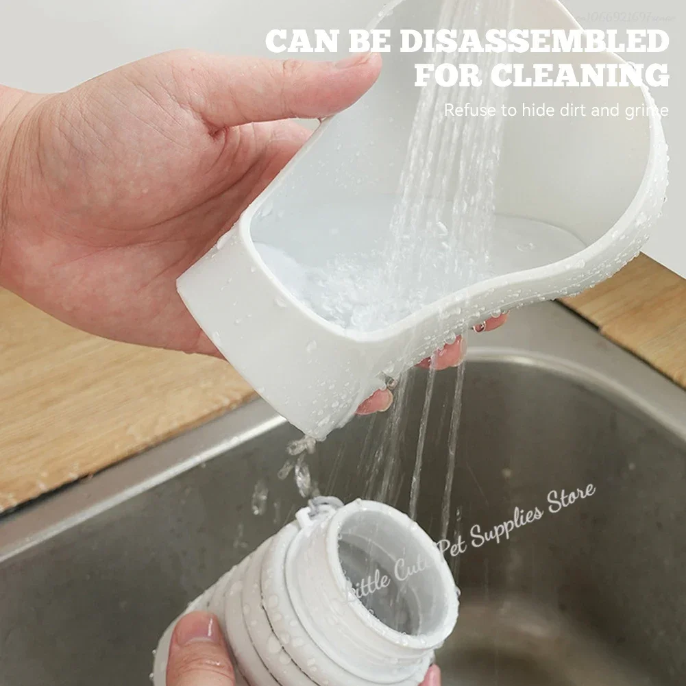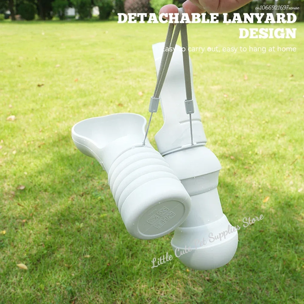 Características:- Botella de agua plegable para mascotas, material seguro, gran capacidad, con cuerda para sujetar.