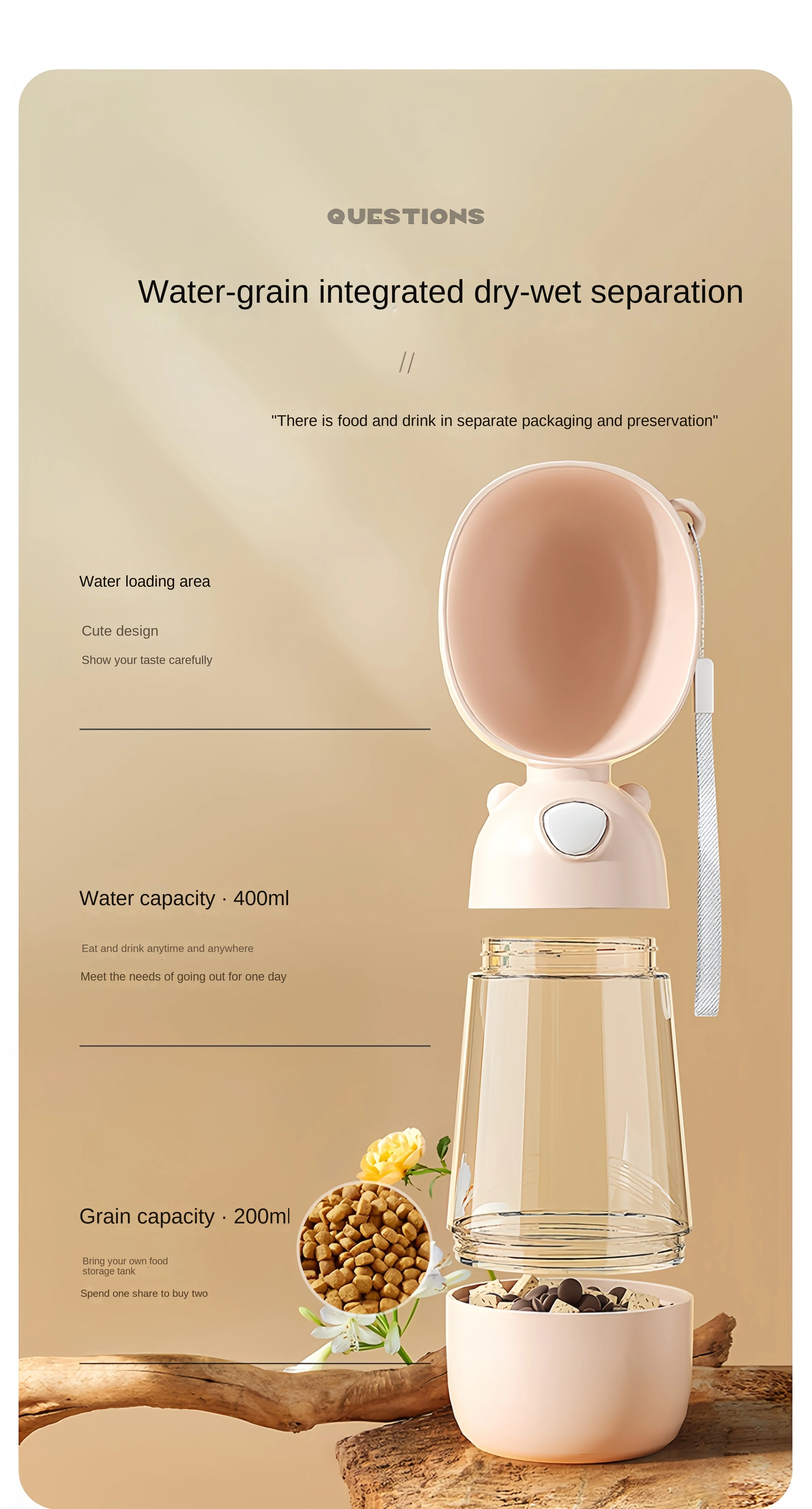Botella de agua portátil 2 en 1 para perro y gato, bebedero para mascotas, viaje al aire libre, bebedero para cachorros, bebedero para gatitos, bebedero para comida