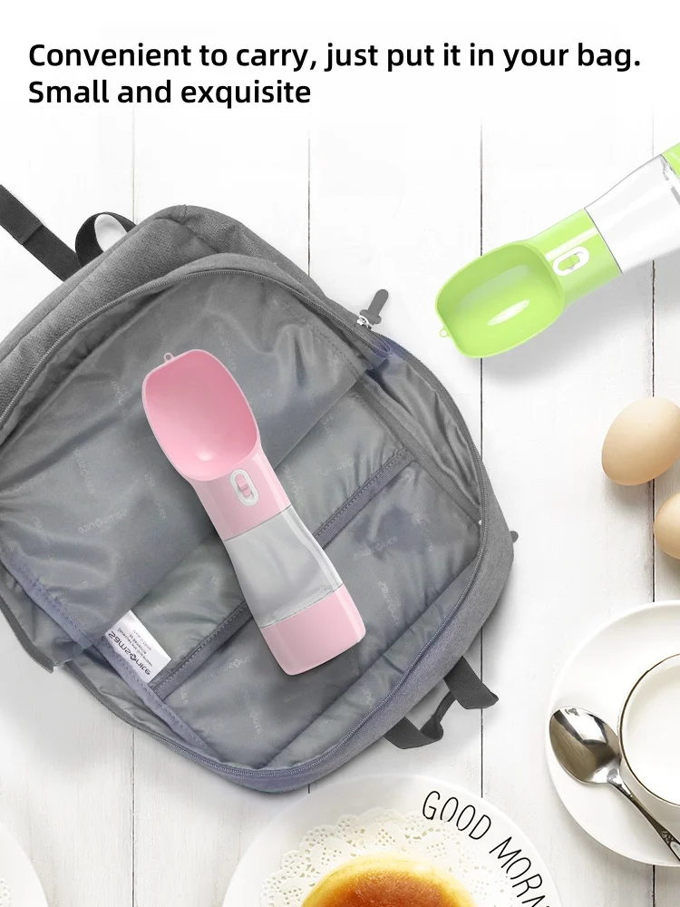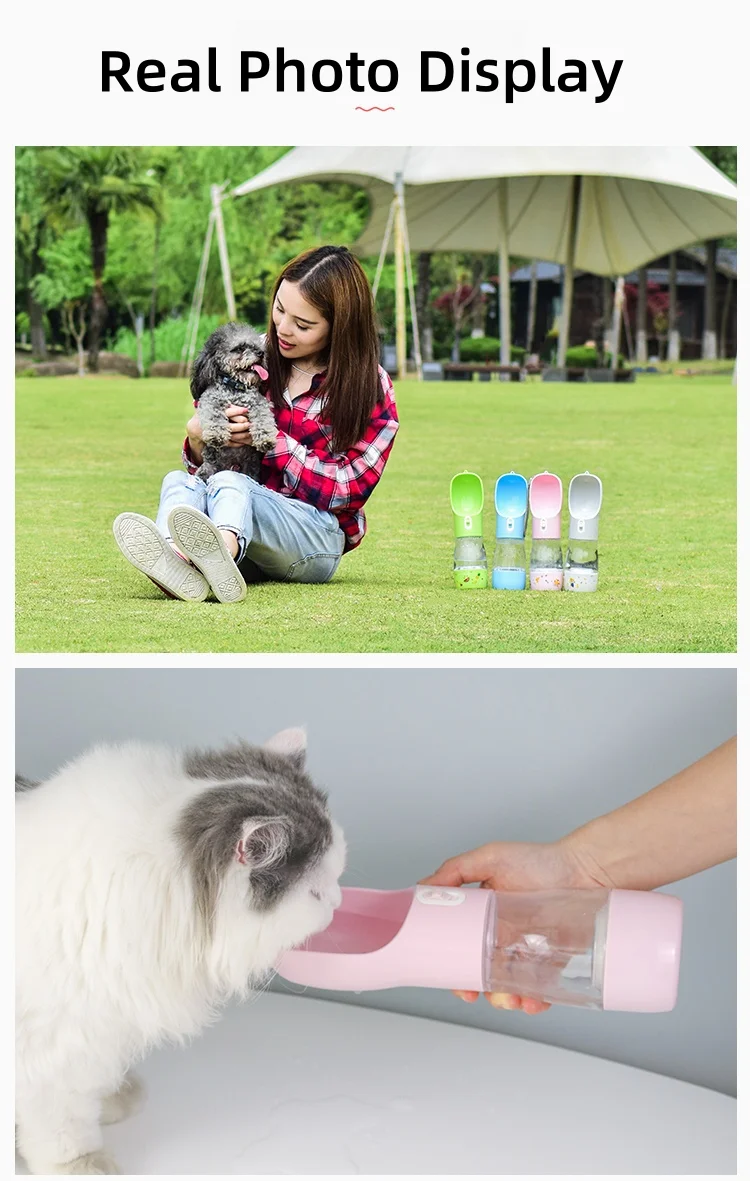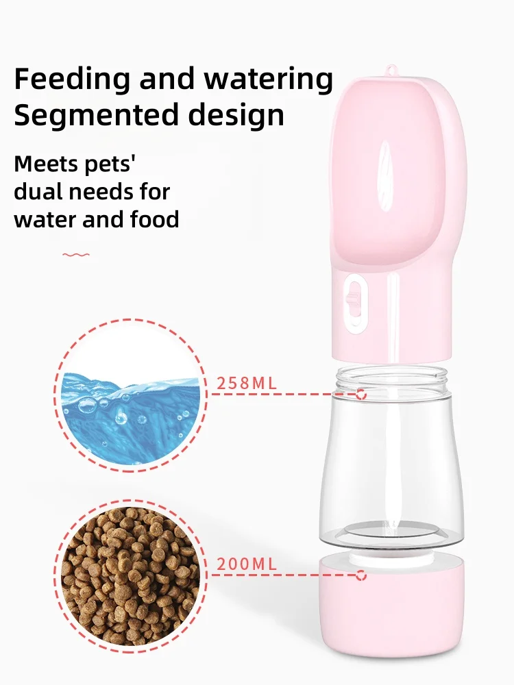 Botella de agua portátil 2 en 1 para perros con contenedor de comida para tazones alimentadores de agua para gatos pequeños y grandes, suministros para Chihuahua