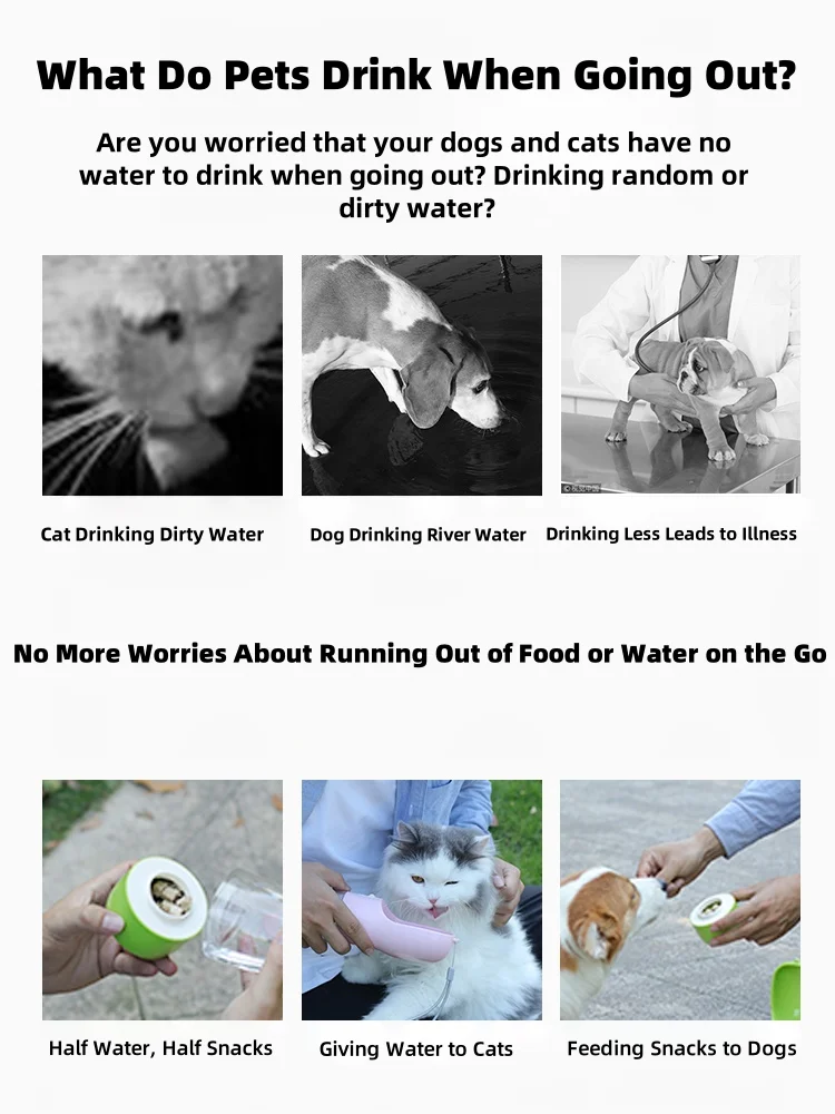 Producto: Botella de agua para perros, Botella de agua portátil para perros 2 en 1, Botella de agua portátil para perros, Botella de agua con recipiente para alimentos, Recipiente para alimentación de agua para gatos, Dispensador de agua para mascotas al aire libre