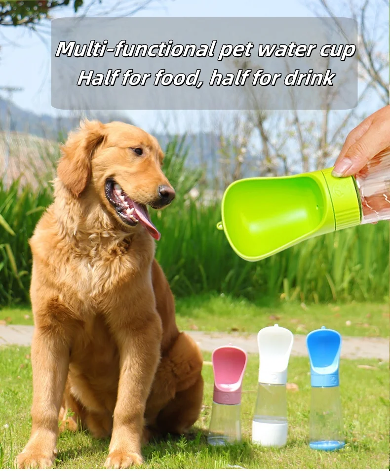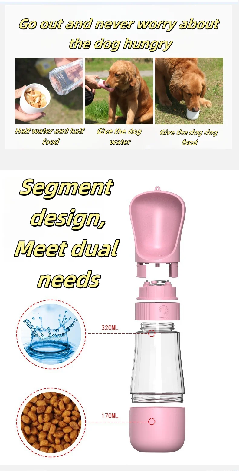 Botella de agua portátil 2 en 1 para perros con recipiente de comida para perros pequeños y grandes, cuenco para beber al aire libre para mascotas, suministros Golden Retriever