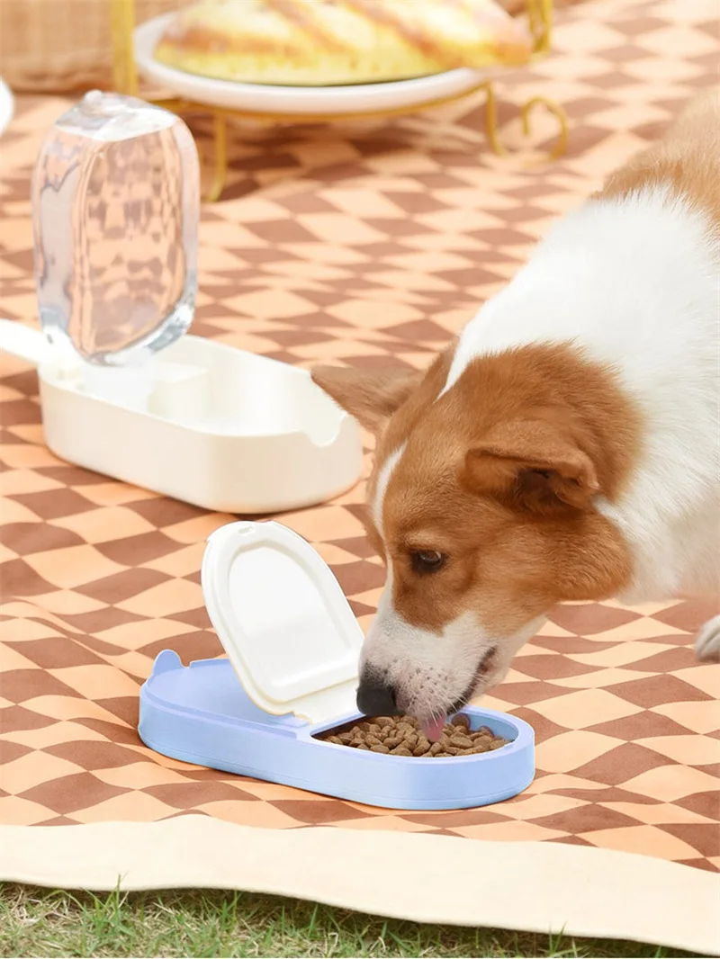 Botella de agua portátil 2 en 1 para perros, dispensador de agua para mascotas con contenedor de comida, cuenco para perros y gatos a prueba de fugas para senderismo, caminar y viajar
