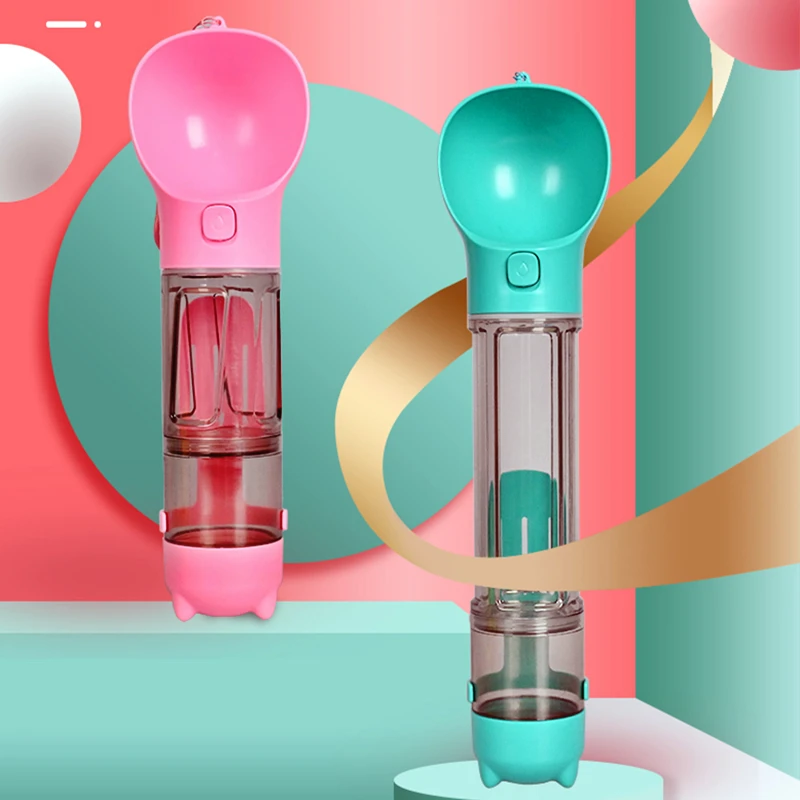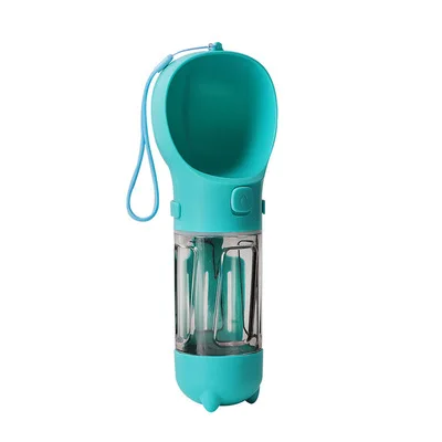 Botella de agua portátil para perros y gatos, alimentador de alimentos, dispensador de caca, 3 en 1, botella bebedora multifuncional a prueba de fugas para perros