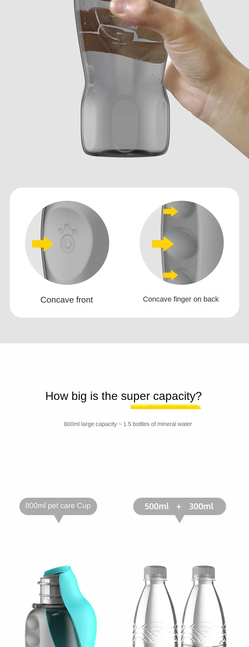 Botella de agua portátil para perros de 800ml, cuenco plegable para exteriores con diseño en forma de hoja, taza de agua para mascotas de viaje para todos los perros