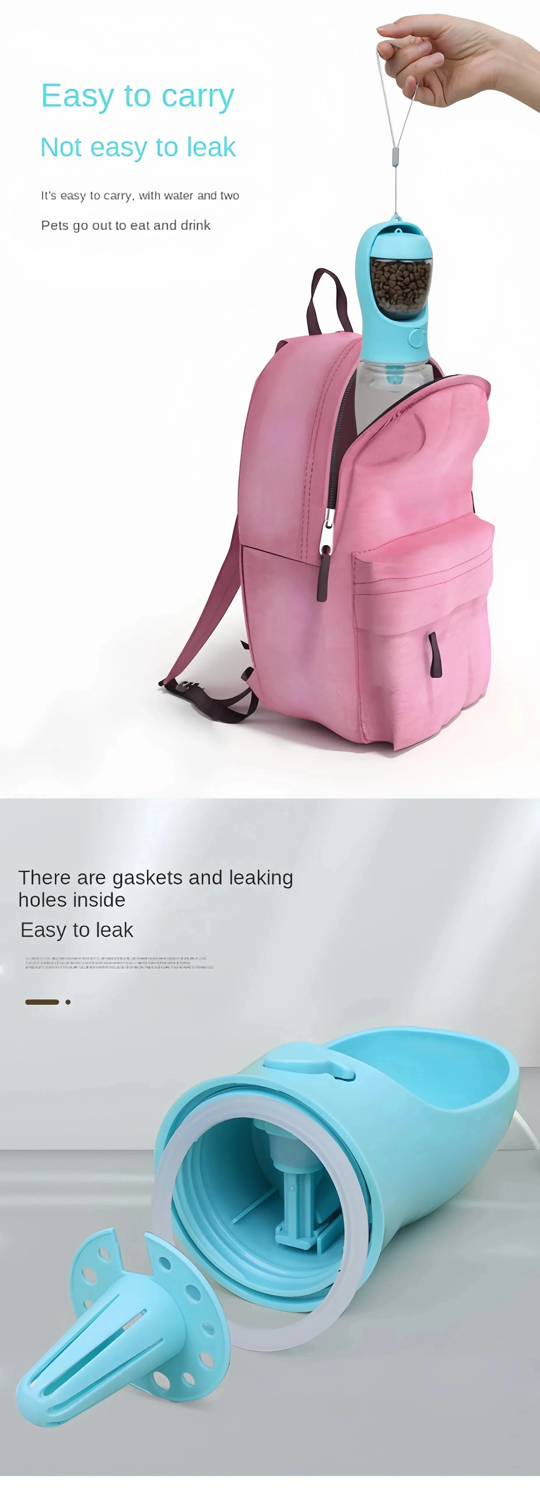 Botella de agua portátil para perros y gatos con almacenamiento de alimentos y contenedor de agua para cachorros, cuenco alimentador para perros, suministros para mascotas de viaje al aire libre