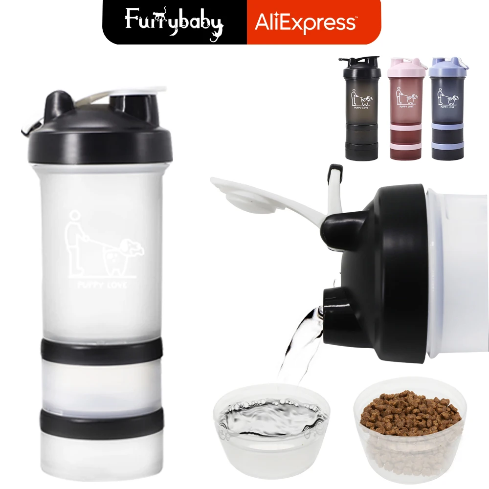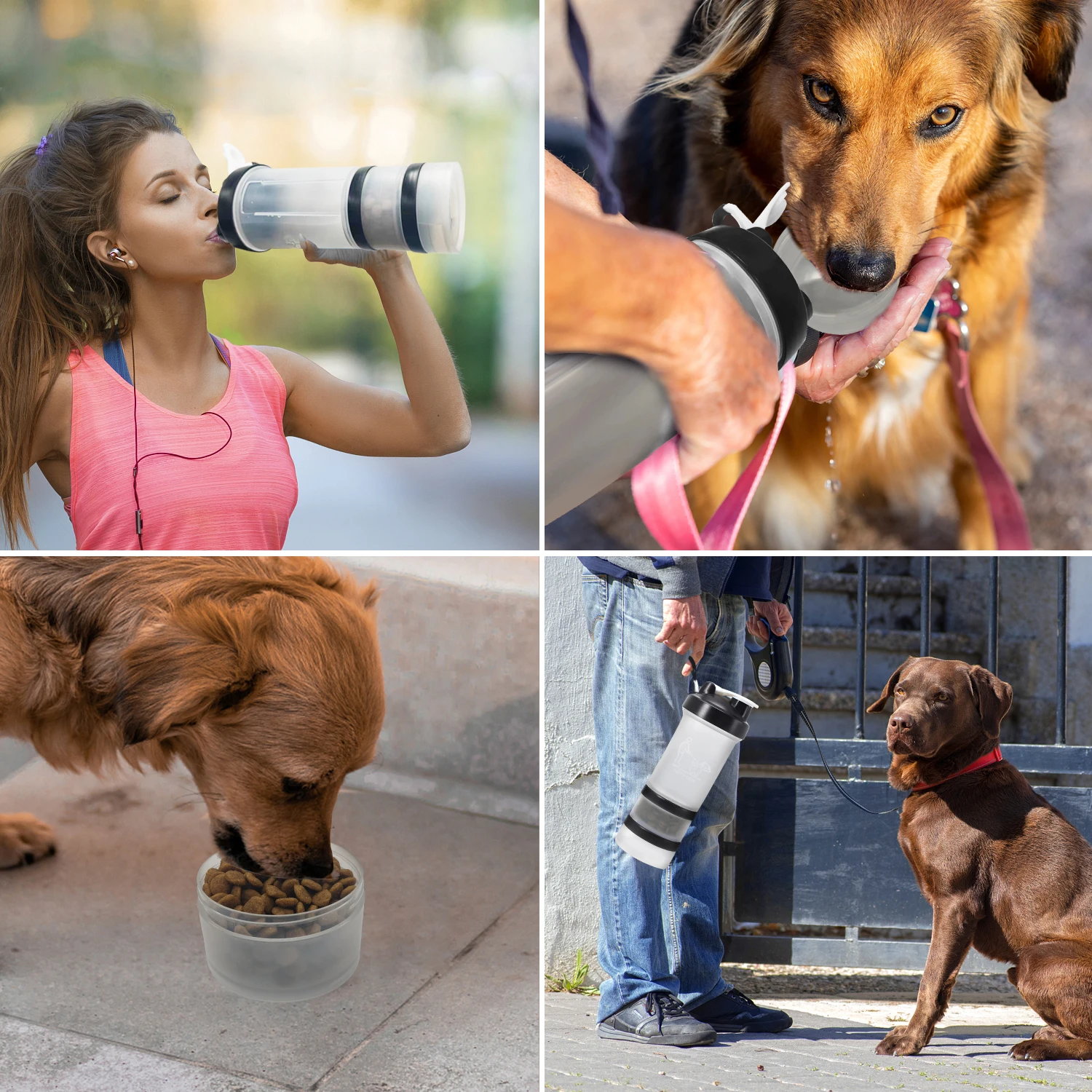 Botella de agua portátil para perros pequeños y grandes, alimentador de comida para caminar al aire libre, a prueba de fugas, botella de agua multifuncional para perros