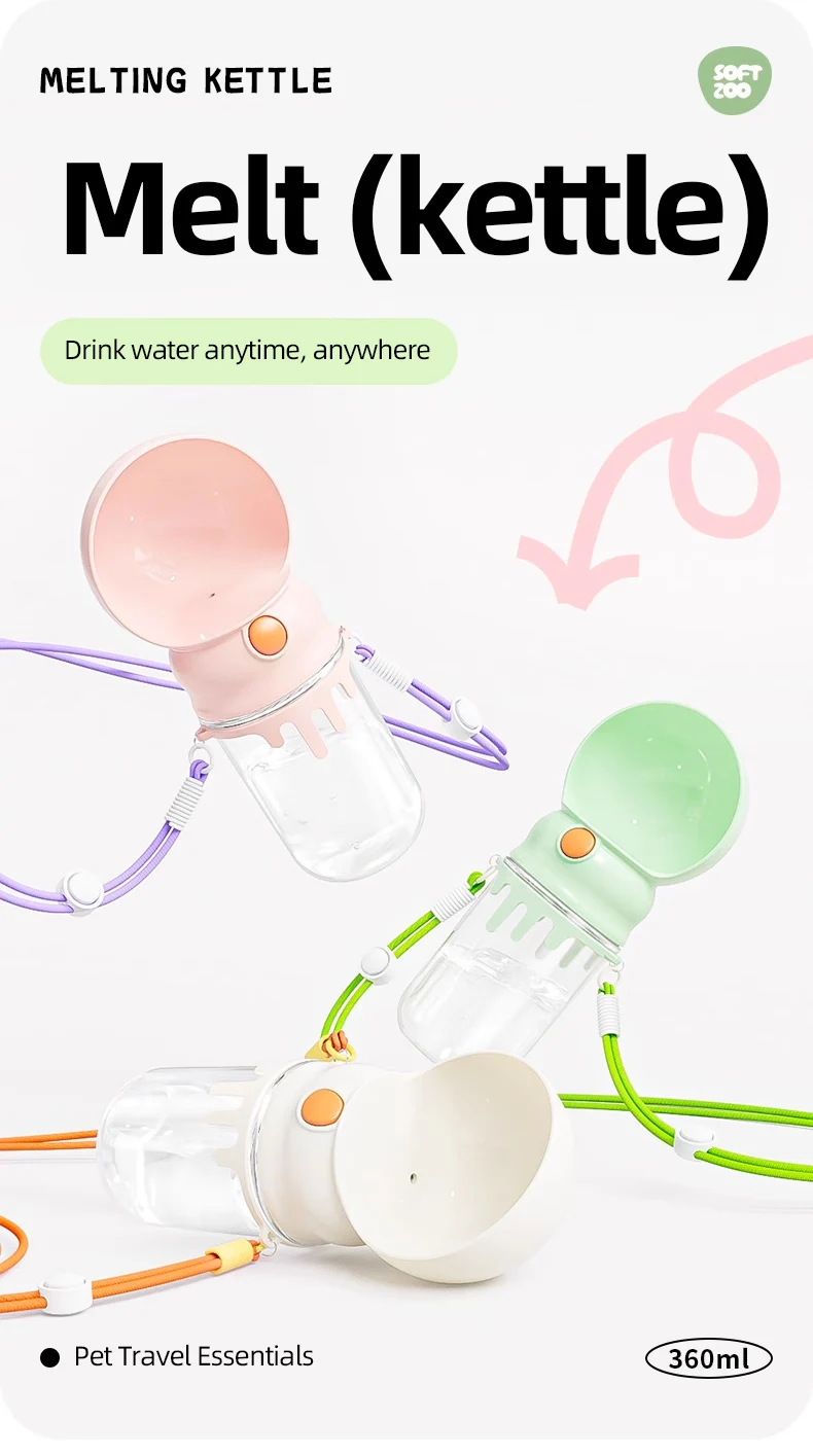 Botella de agua portátil para perros, viaje, bebedero al aire libre, 360 ml, a prueba de fugas, botella para beber para mascotas, gatos y perros, compañero para mascotas