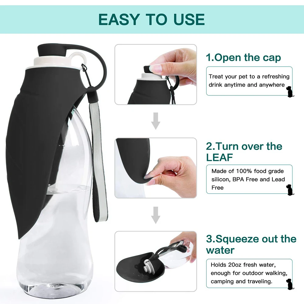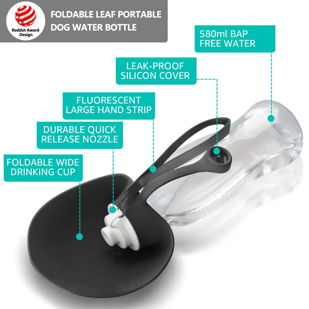 Aspecto de hoja creativo, novedoso y único, diferente de las botellas de agua comunes para mascotas, que agrega un toque único de diversión a los viajes de usted y de su perro.