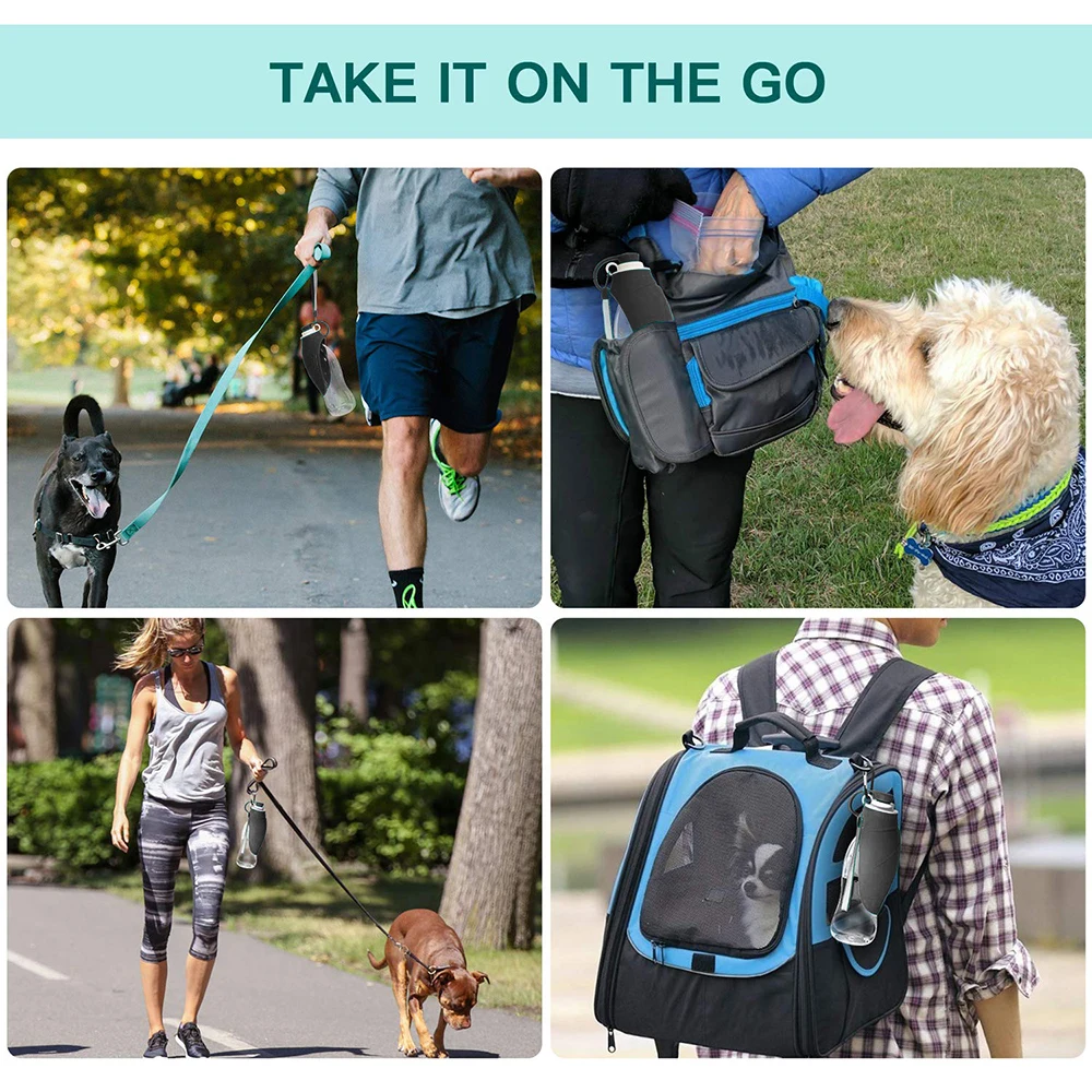 Con una gran capacidad de 580 ml, satisface las necesidades de bebida de los perros durante las actividades al aire libre y reduce la molestia de tener que rellenar el agua con frecuencia.Al utilizar material libre de BPA, es seguro y no tóxico, lo que garantiza la salud del agua potable de los perros.