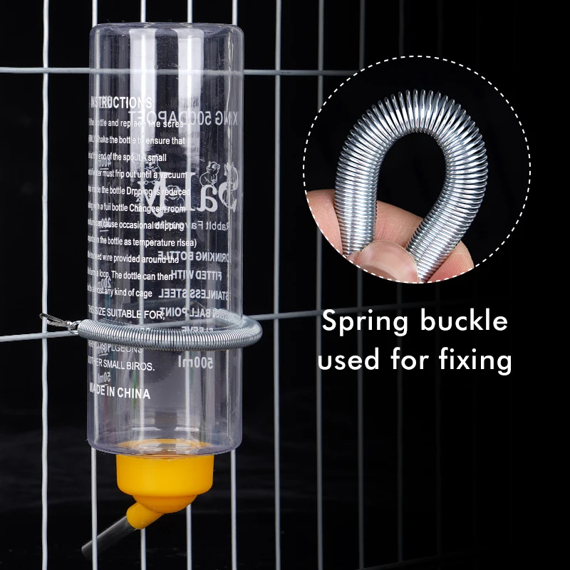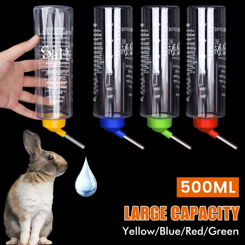 Botella bebedora de animales pequeños de 500ml, botella de agua potable automática colgante para conejo, conejillo de indias, loro, suministros de alimentación