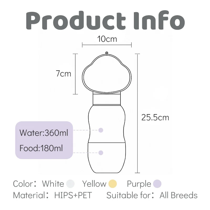 -Tamaño del producto: Agua 360ml Comida 180ml