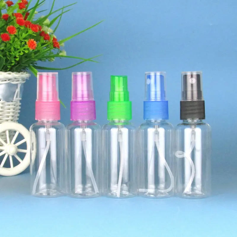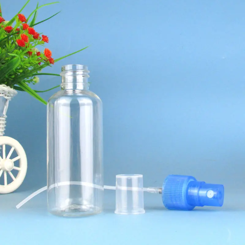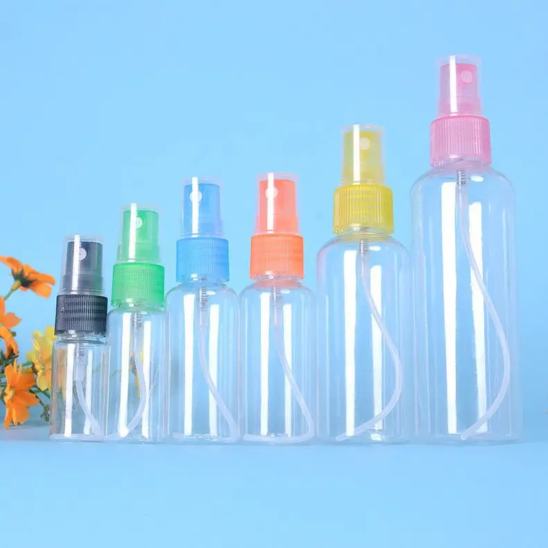 Botella de Spray transparente para desinfectante, espray pequeño cosmético, regadera pequeña, frasco desinfectante de Alcohol, 50, 60 y 100ML