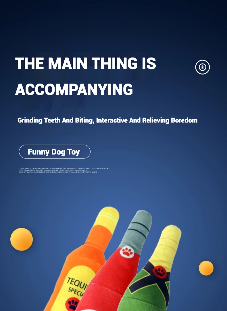 🌟 Juguete interactivo chirriante con botella para mascotas: Hecho de material duradero y apto para uso alimentario, este juguete es perfecto para masticar y jugar interactivamente.Su creativa forma de botella mantiene a las mascotas entretenidas y al mismo tiempo es fácil de limpiar.