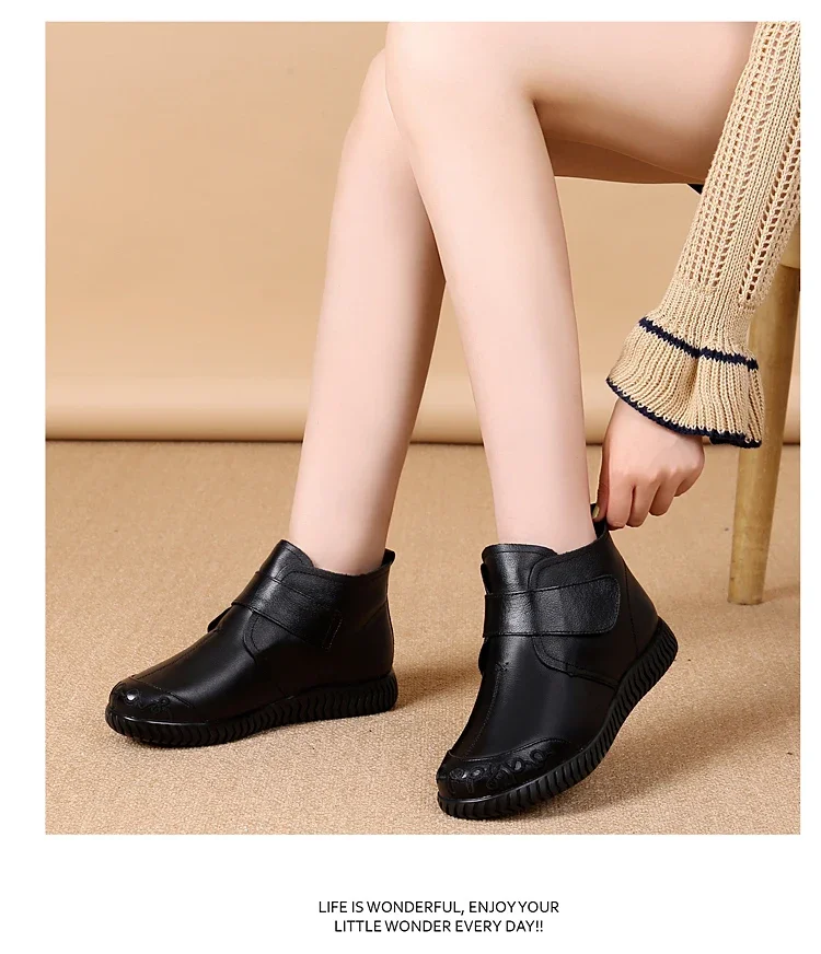 Botines cálidos de piel gruesa para mujeres mayores, botines cortos de felpa de invierno de cuero dividido para abuela, botas de lana antideslizantes para mujer, novedad