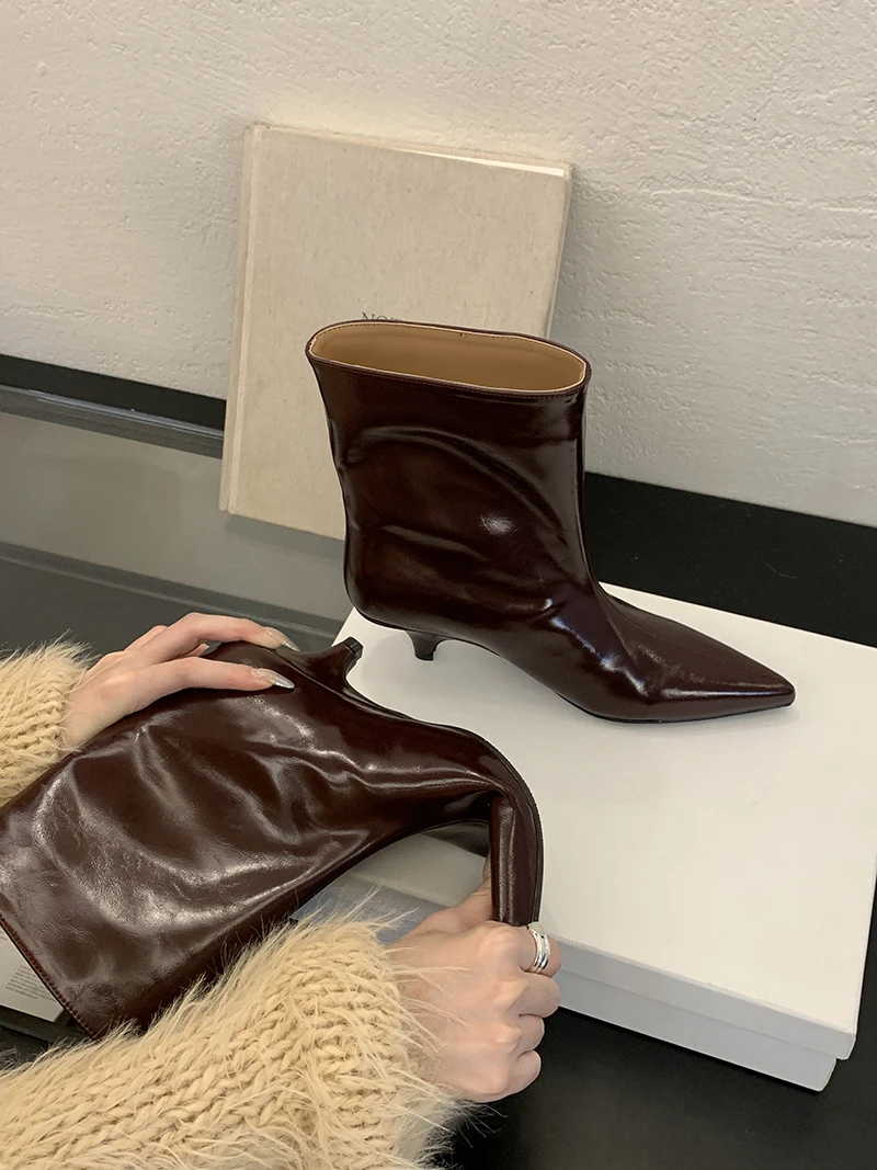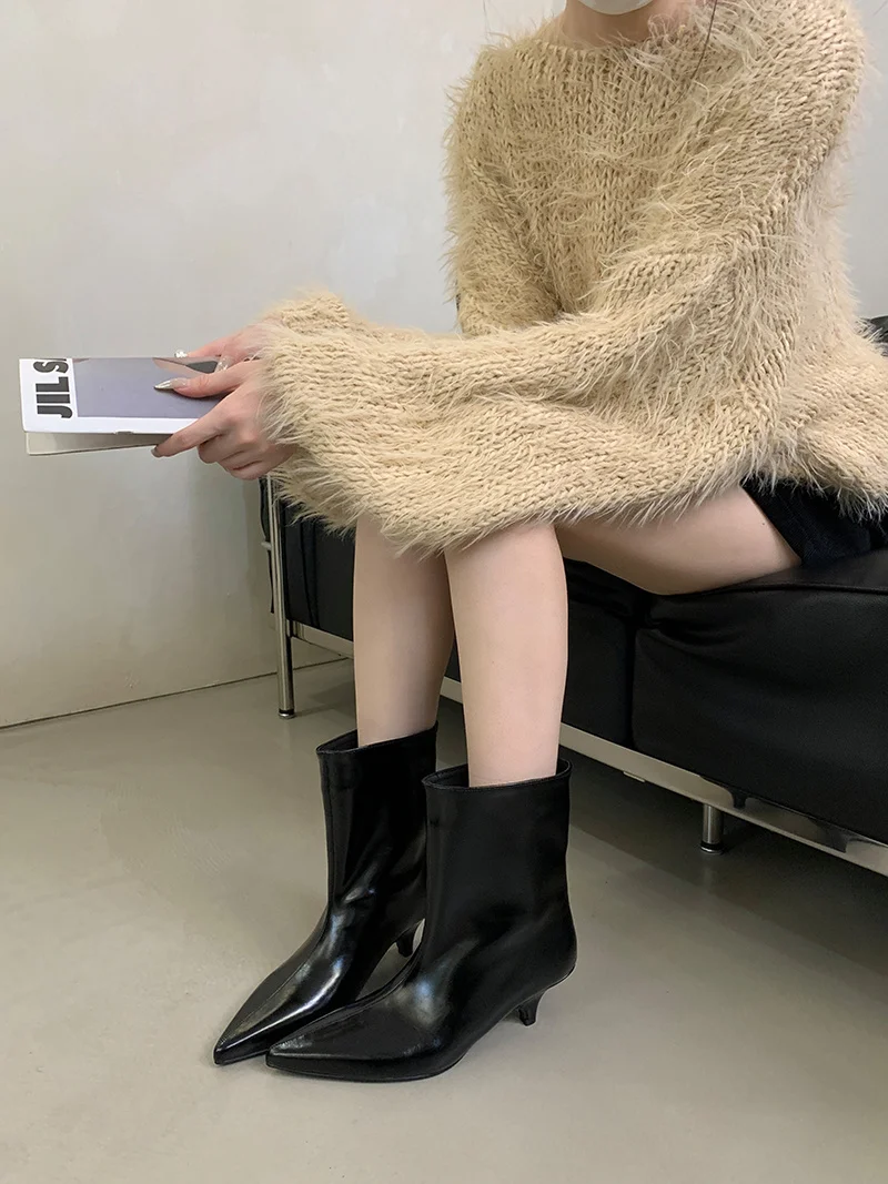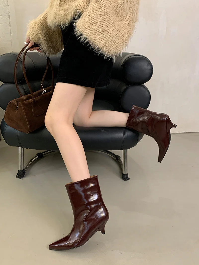 Botines De estilo callejero con punta estrecha para Mujer, zapatos De tacón para vestido De fiesta, tacones bajos finos, Botas cortas modernas, Zapatos De Mujer