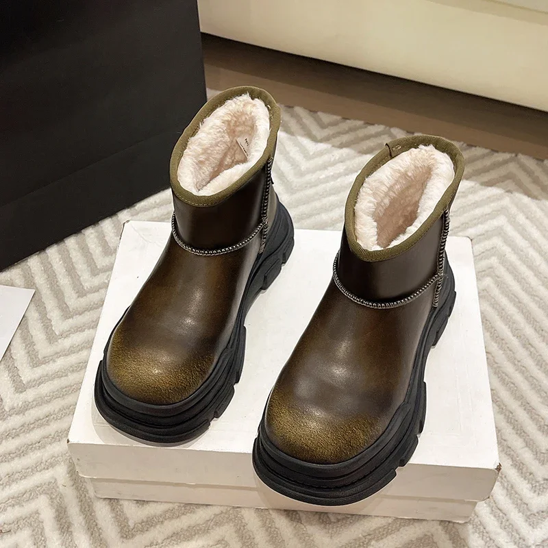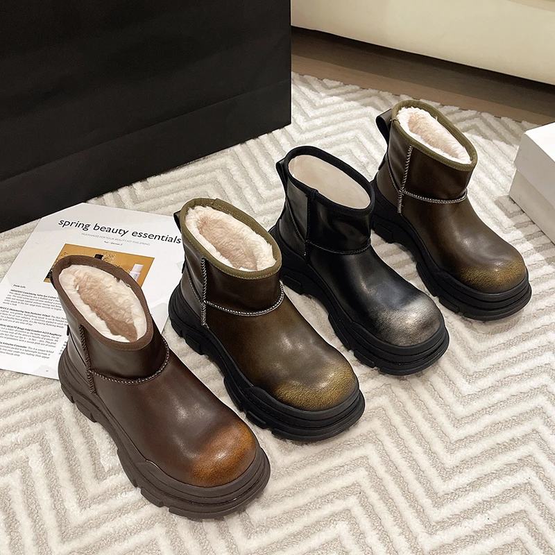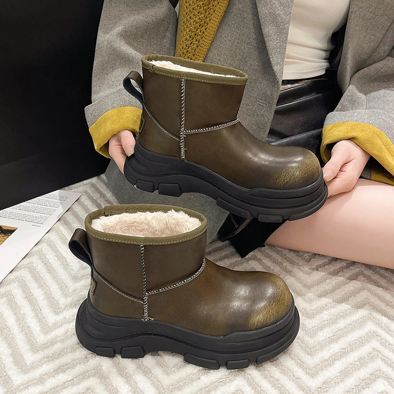 Botines de invierno Para Mujer, Zapatos planos informales a la moda, Botas de invierno cálidas con plataforma, nuevas Botas de nieve acogedoras Para Mujer