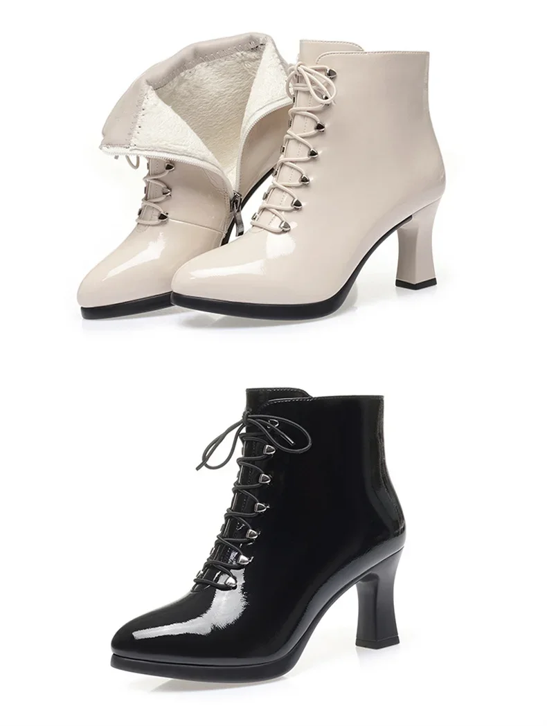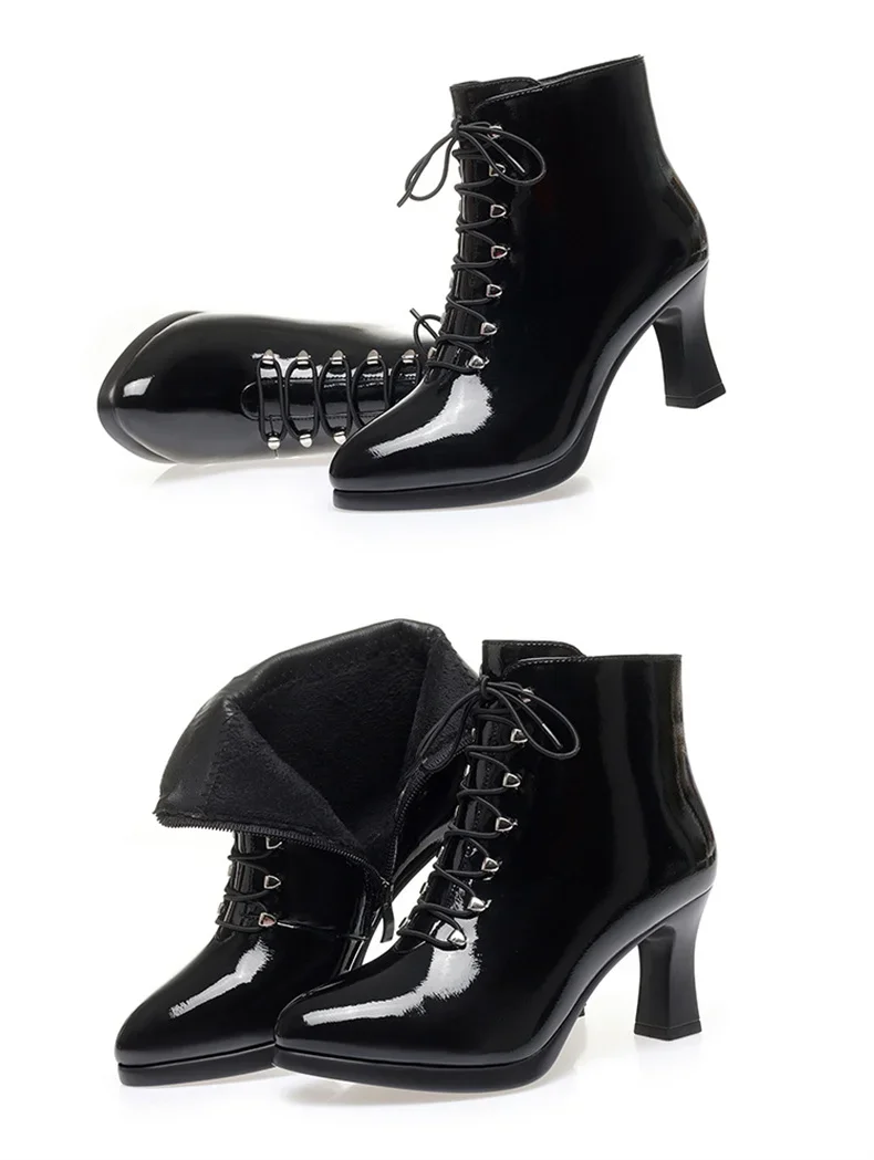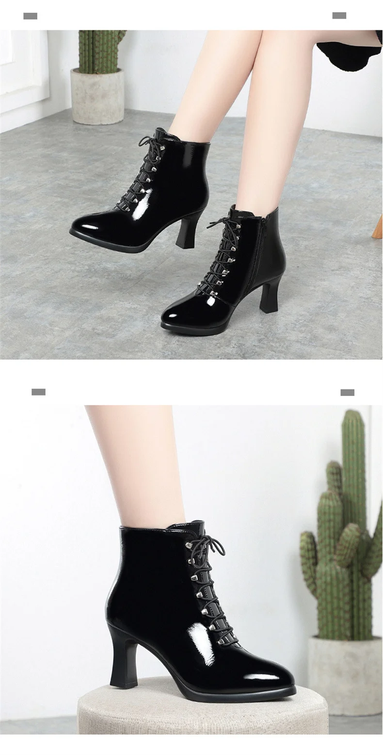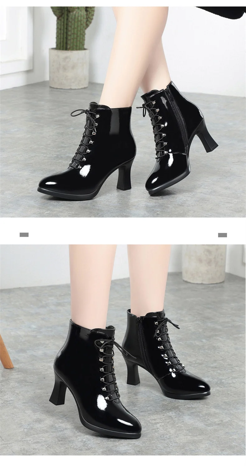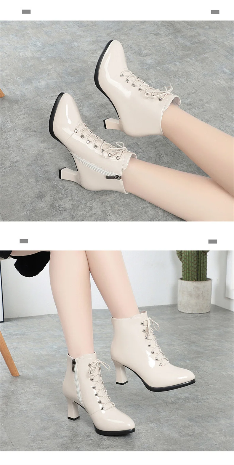 Botines de mujer estilo británico zapatos de tacón grueso moda con cordones Otoño e Invierno mantener caliente punta puntiaguda para la oficina