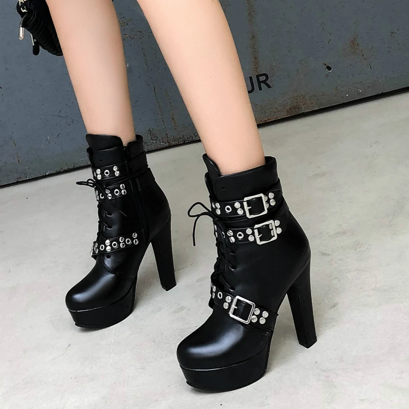 Botines de mujer con plataforma, rojo, amarillo, blanco, con cordones, tacones altos, bota corta, hebilla femenina, Otoño Invierno, zapatos sexis para hombre de talla grande