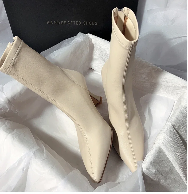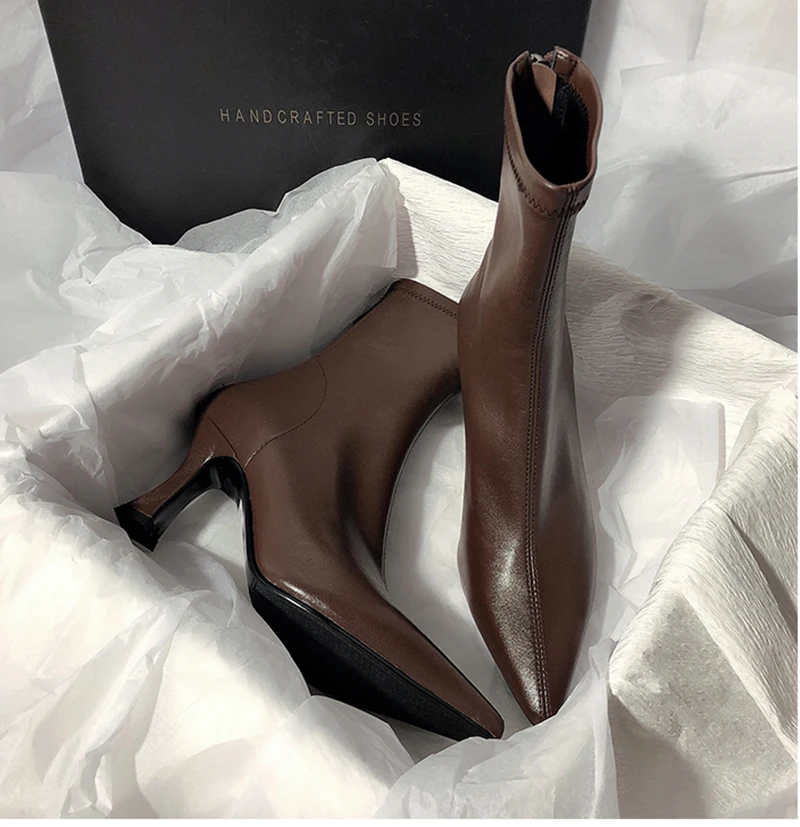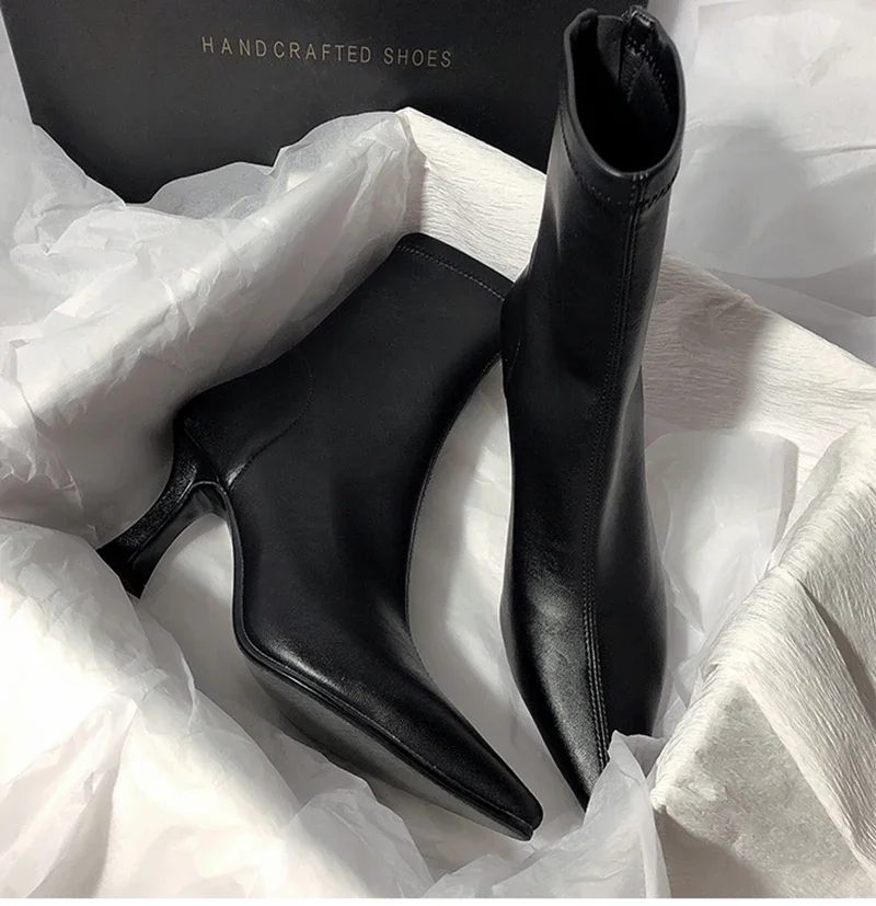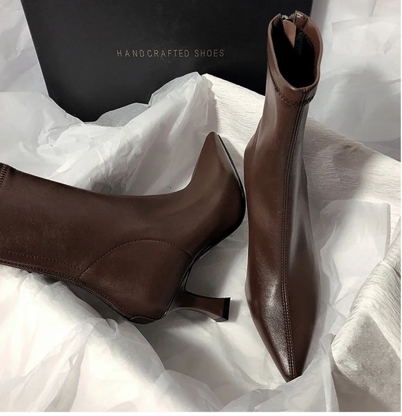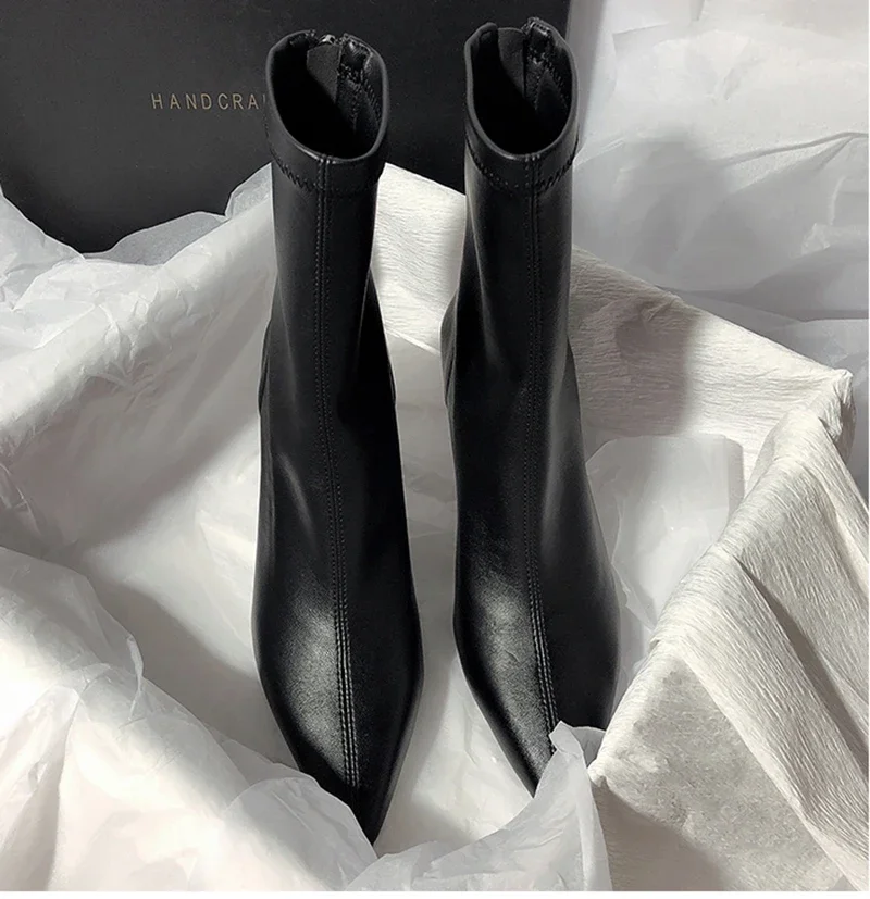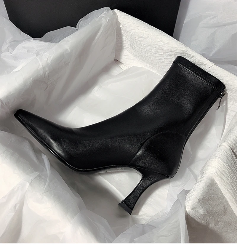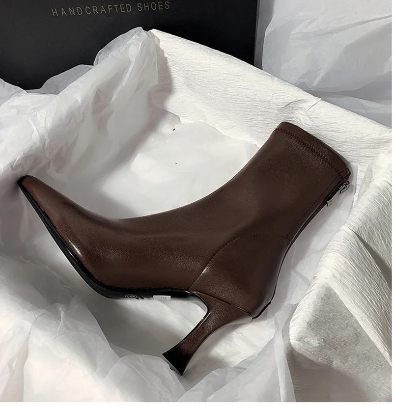 Botines puntiagudos para mujer, botas cortas con cremalleras traseras a la moda, tacón alto fino para mujer, Otoño Invierno 2025