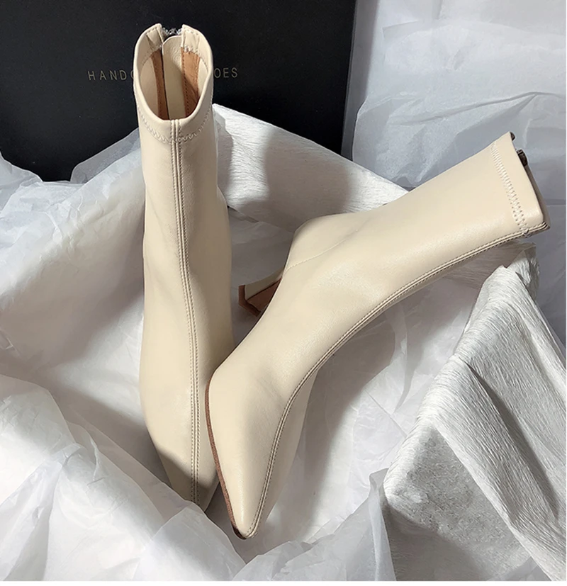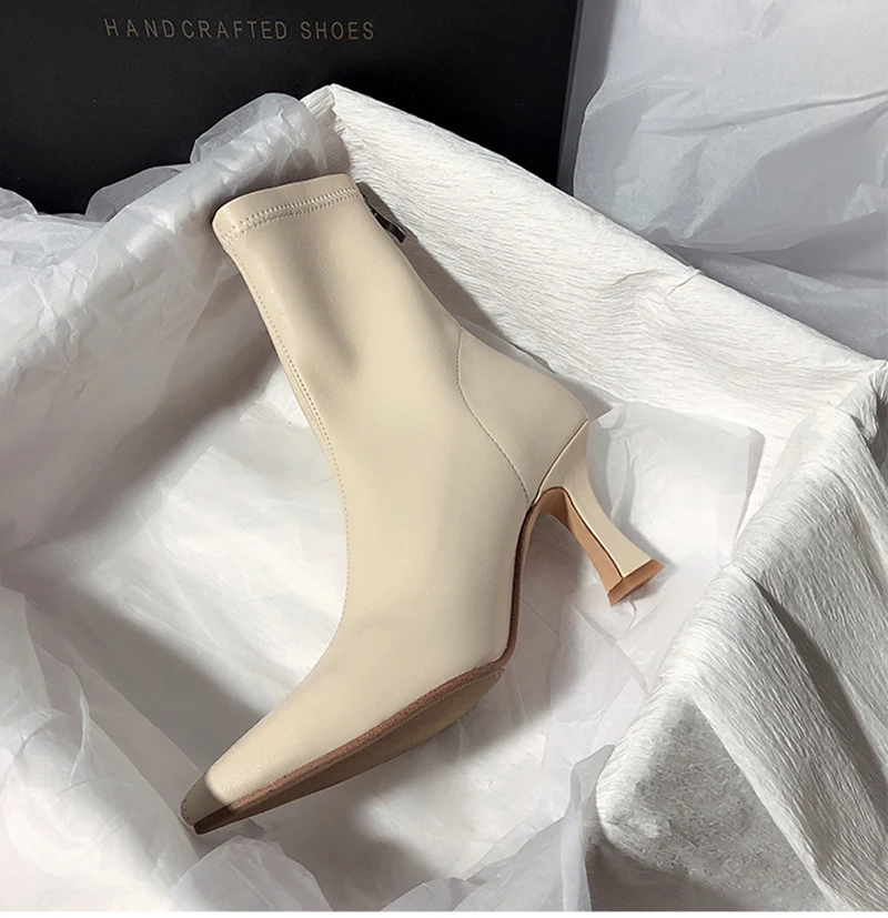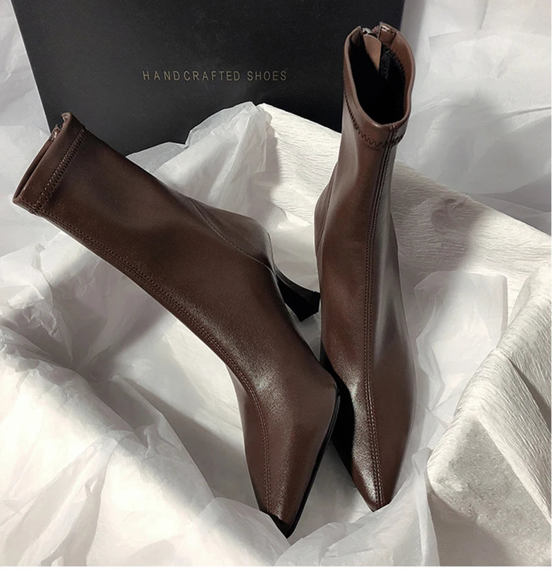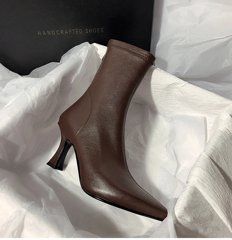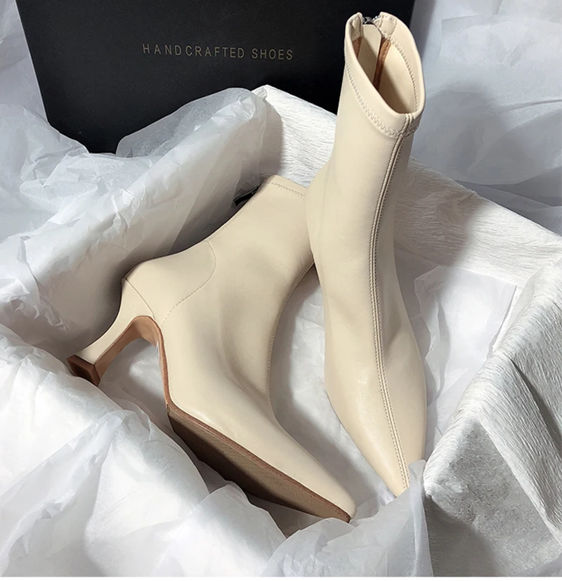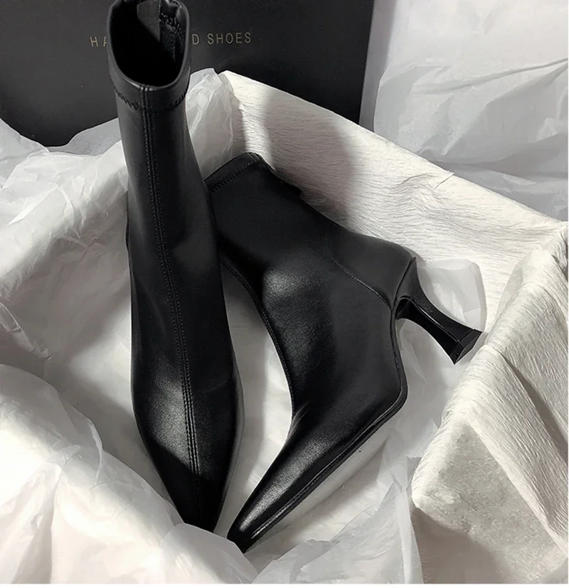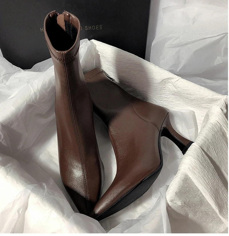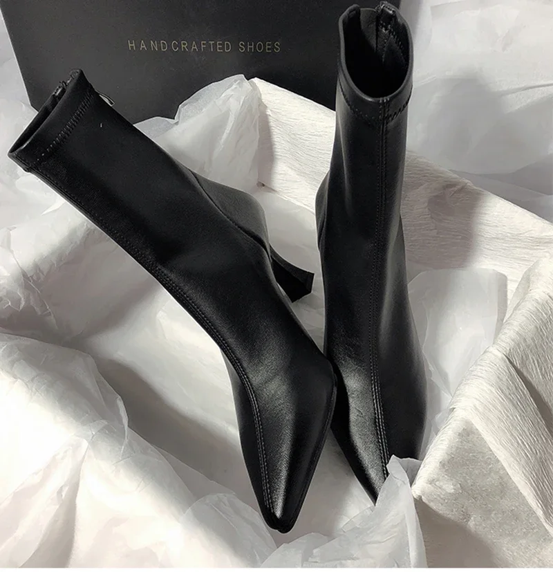 Botines puntiagudos para mujer, botas cortas con cremalleras traseras a la moda, tacón alto fino para mujer, Otoño Invierno 2025