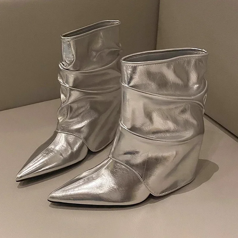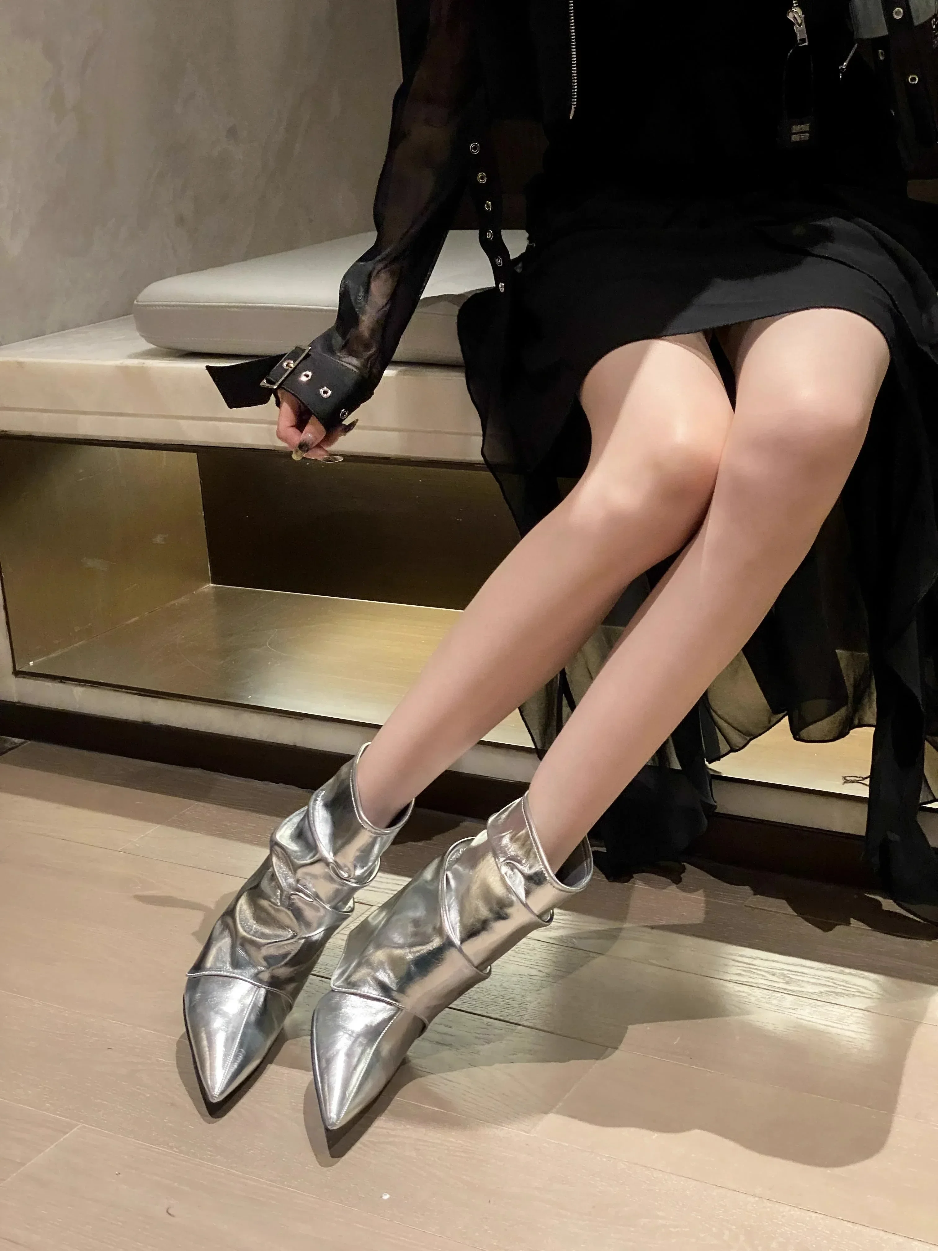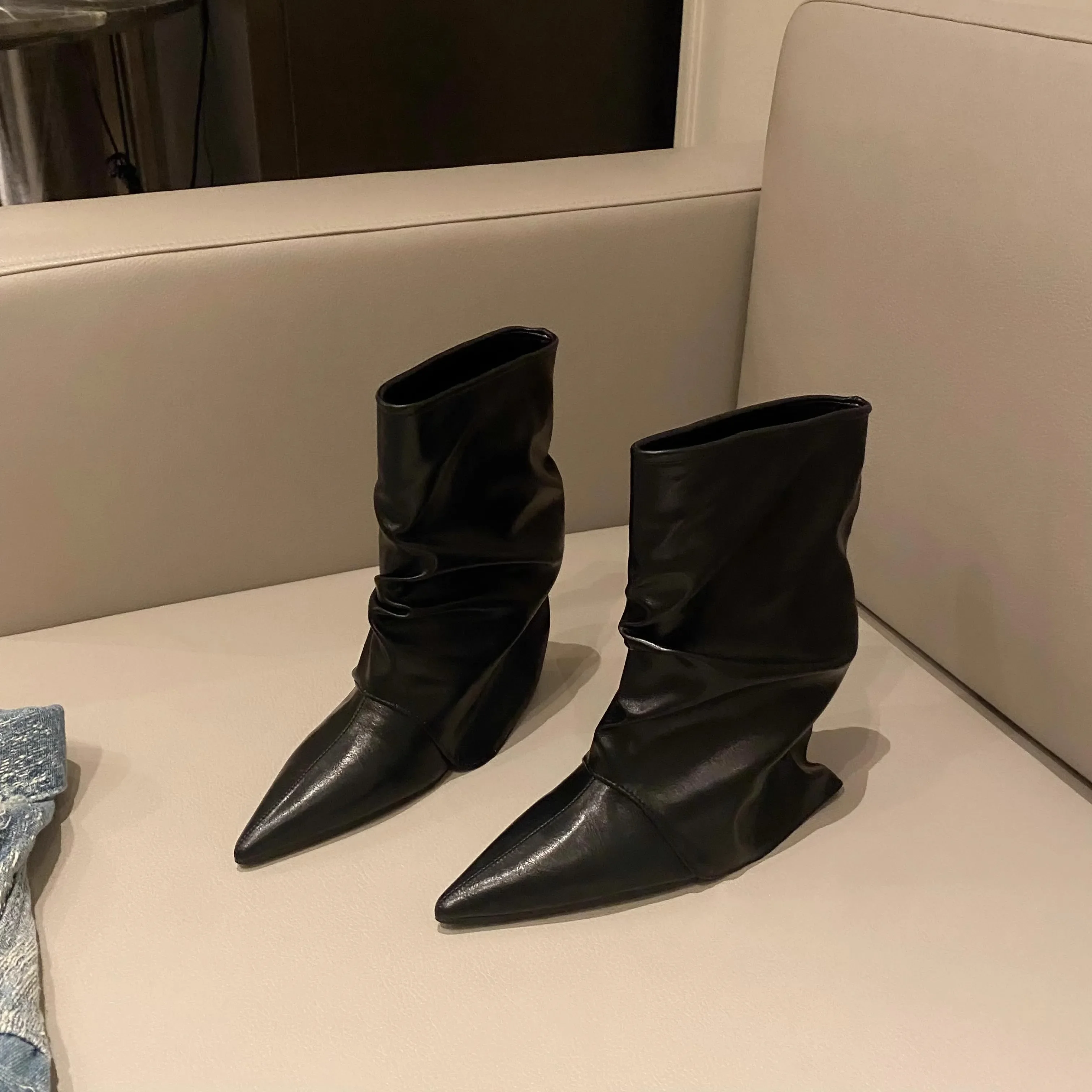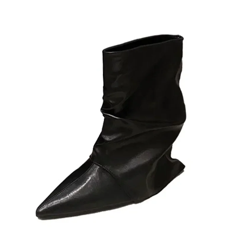 Botines puntiagudos para Mujer, zapatos de cuero sexis para nieve, zapatos de moda de diseñador para Mujer 2025, Botas góticas de invierno Chelsea para Mujer