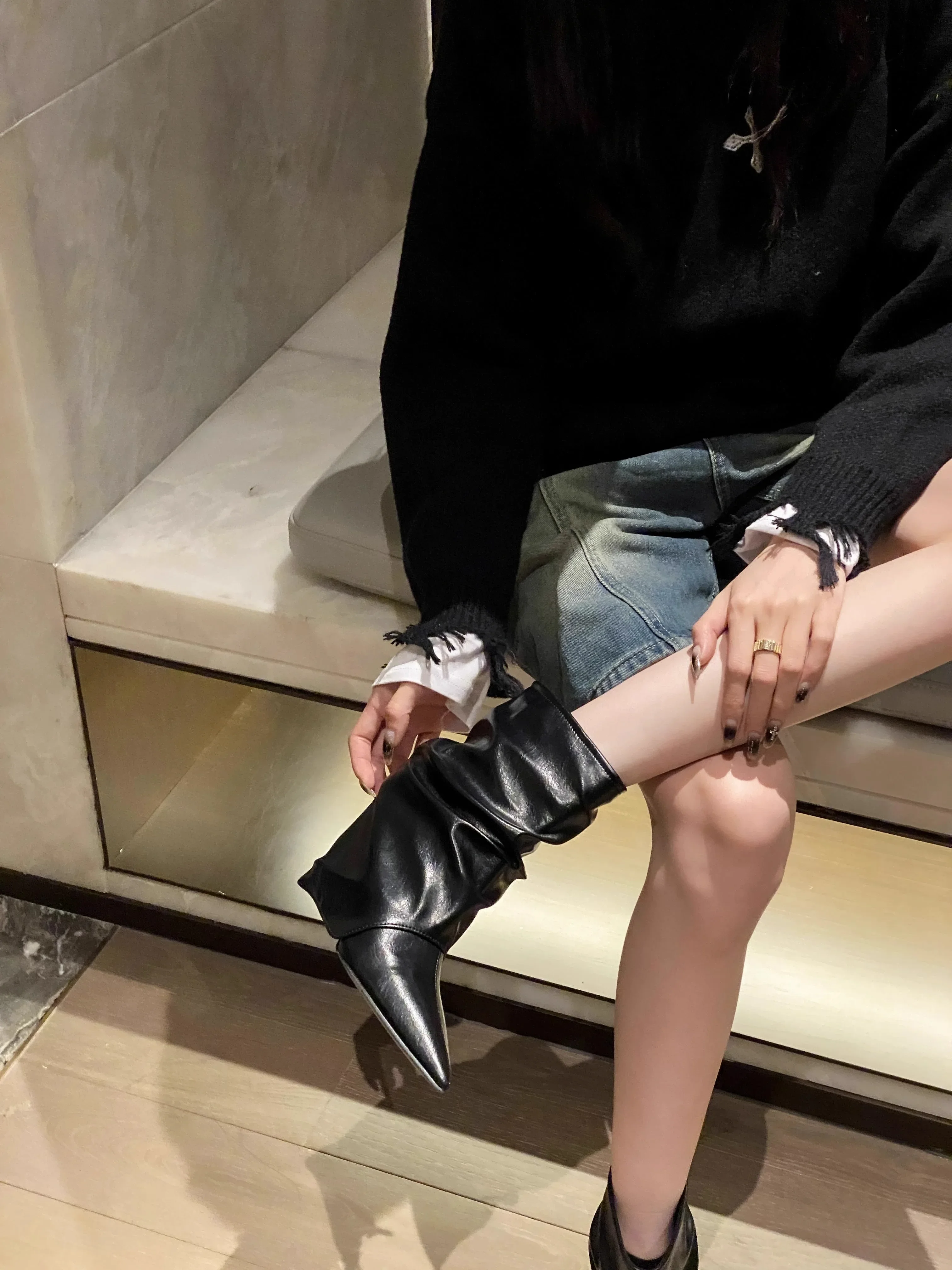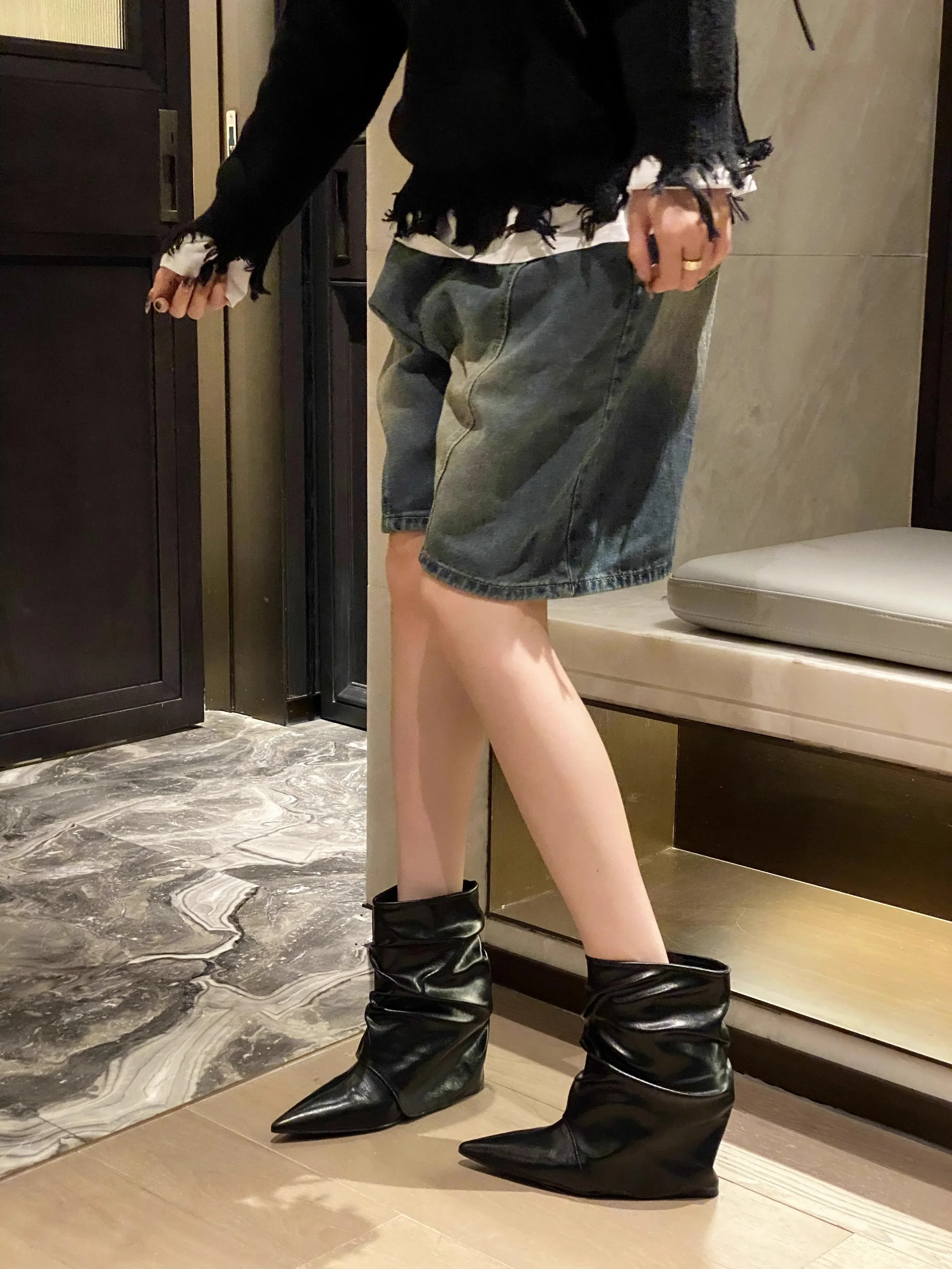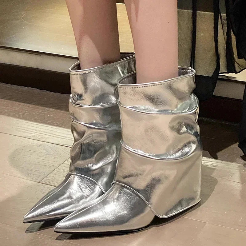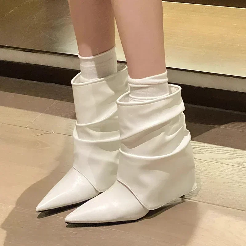 Botines puntiagudos para Mujer, zapatos de cuero sexis para nieve, zapatos de moda de diseñador para Mujer 2025, Botas góticas de invierno Chelsea para Mujer