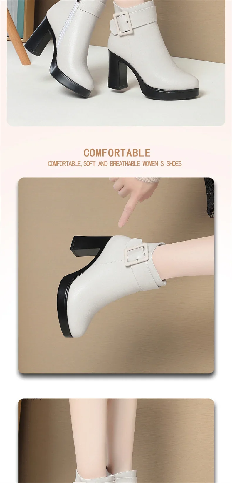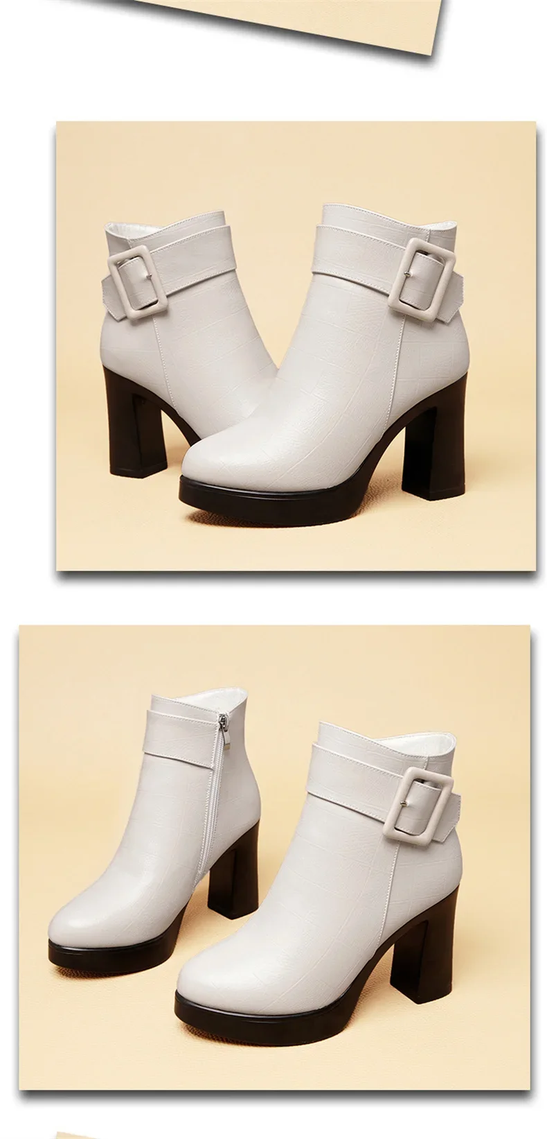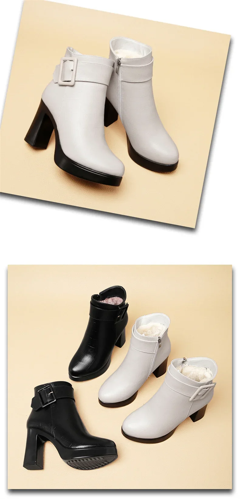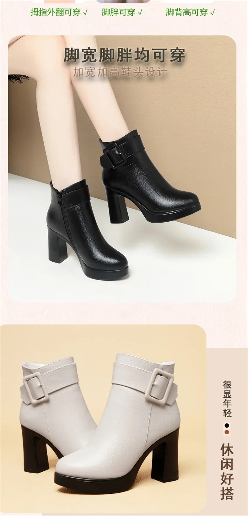 Botines de tacón alto grueso para mujer, botas de cuero con decoración de hebilla corta, elegantes, a la moda, para mantener el calor, color negro, invierno, 2024