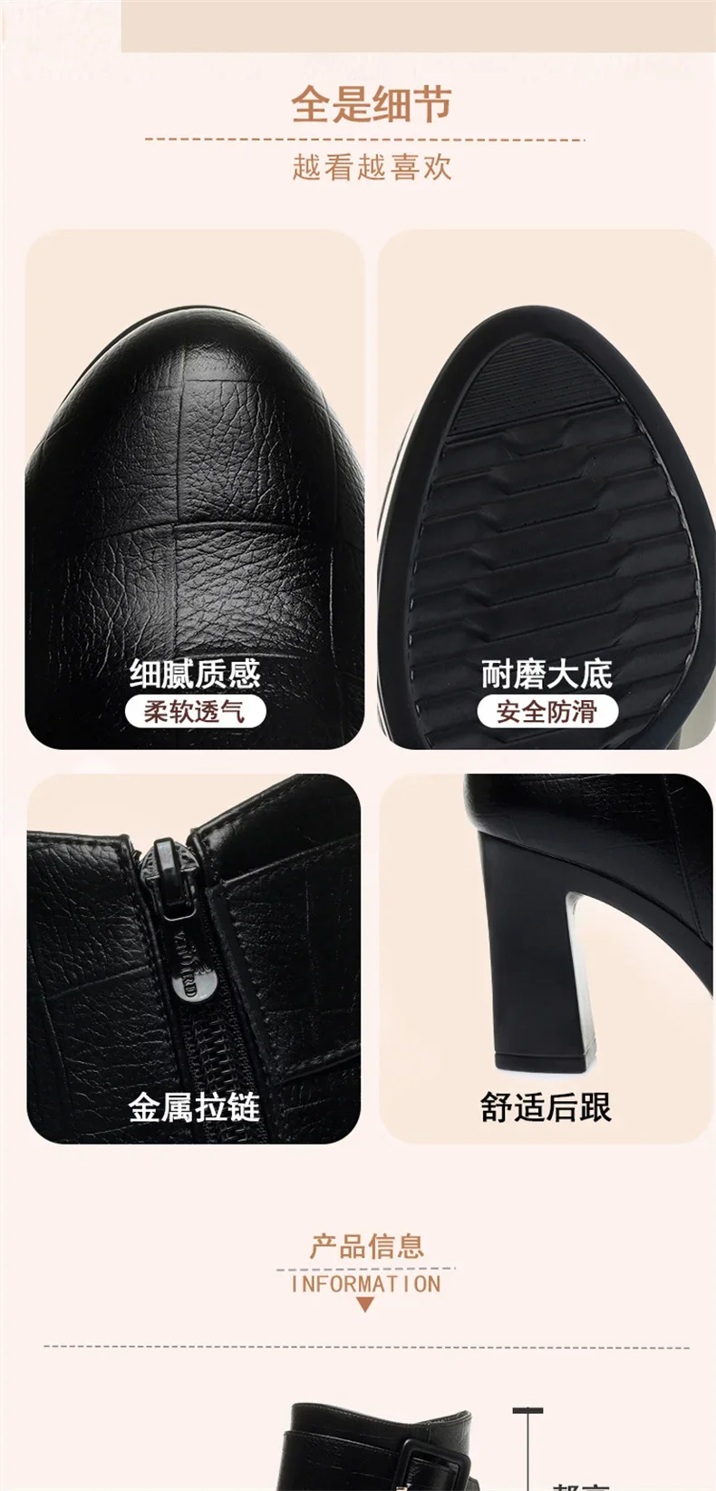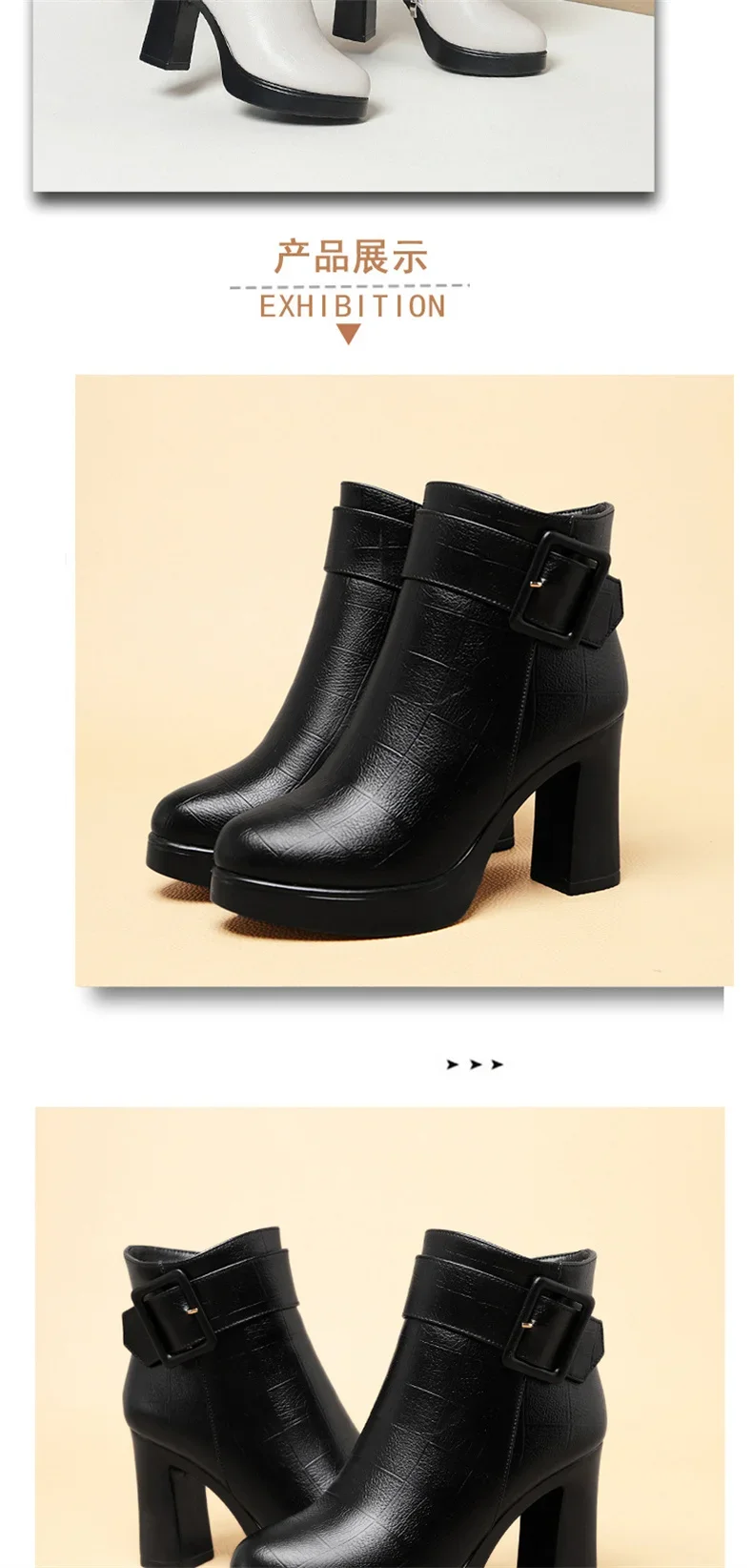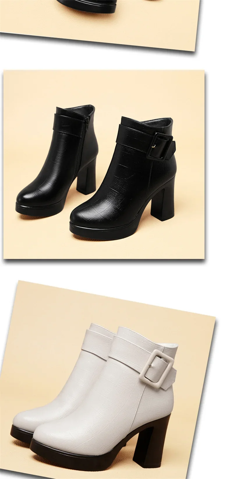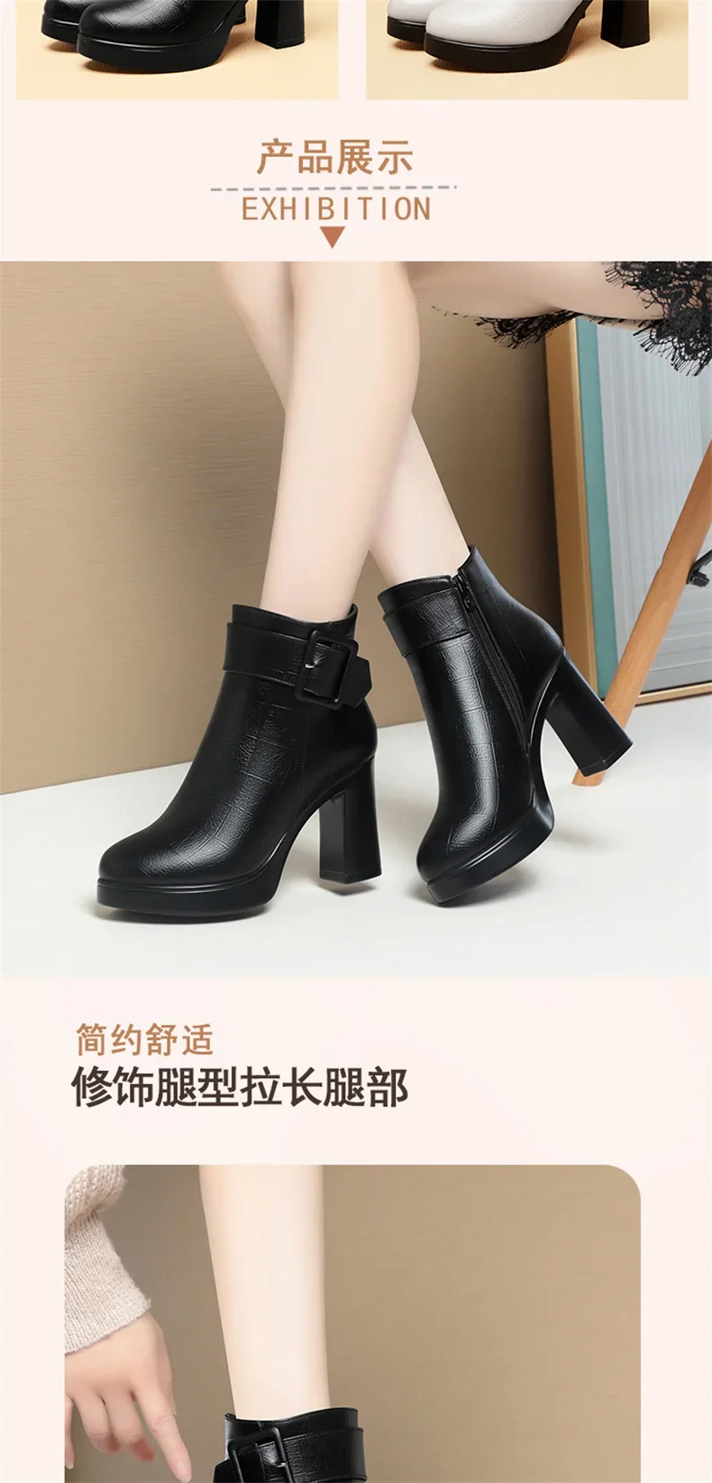 Botines de tacón alto grueso para mujer, botas de cuero con decoración de hebilla corta, elegantes, a la moda, para mantener el calor, color negro, invierno, 2024