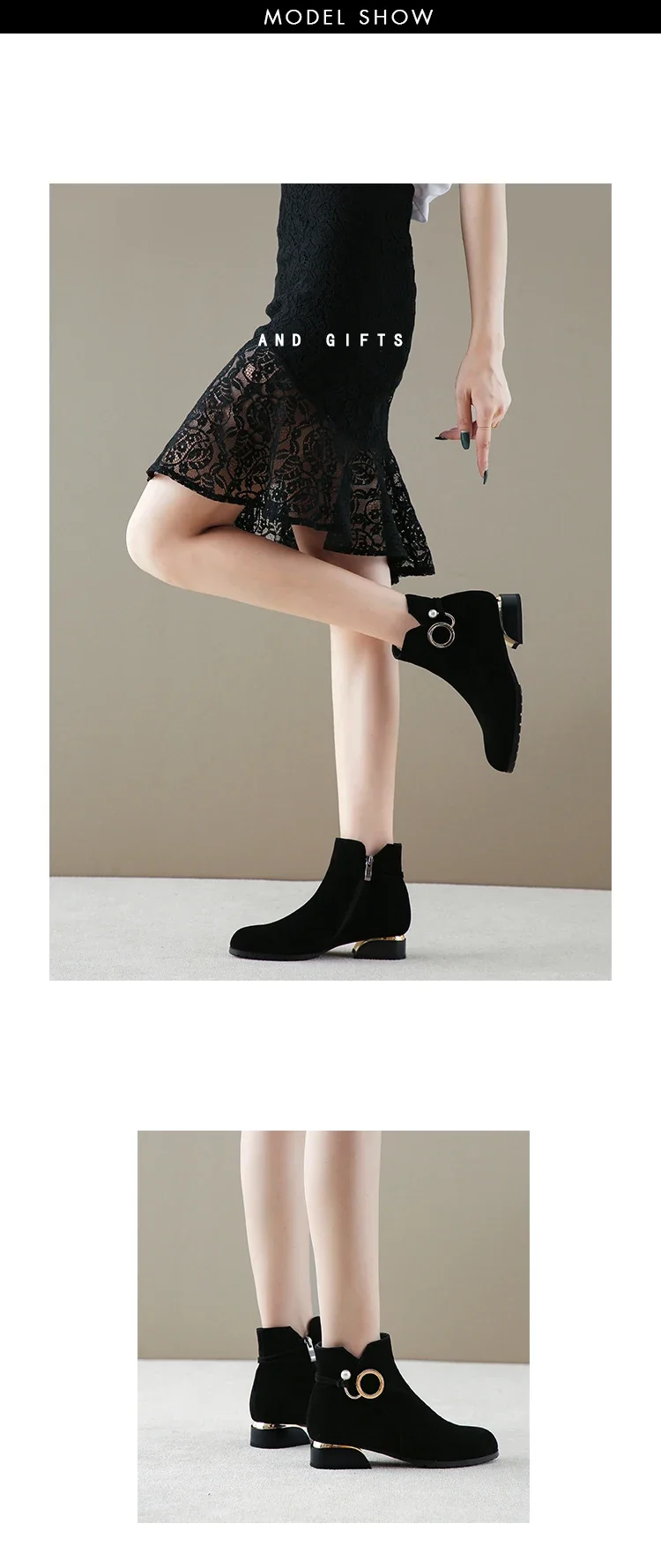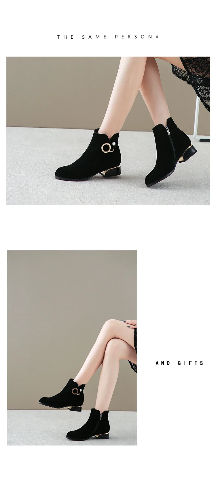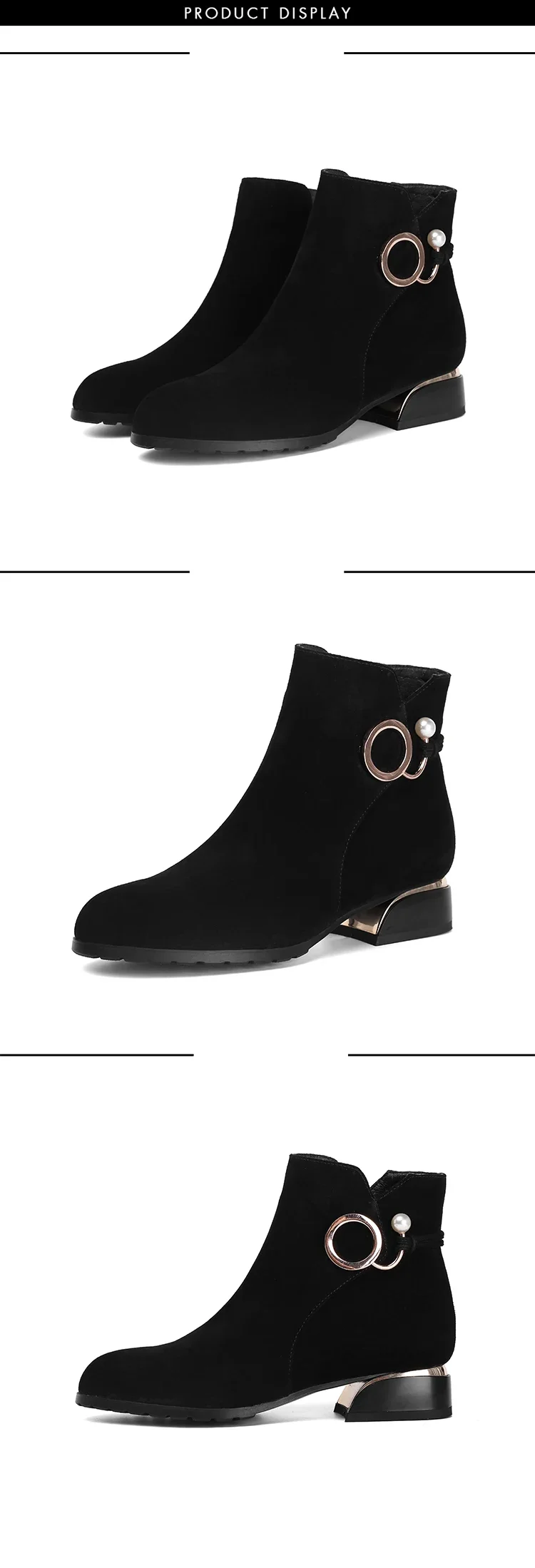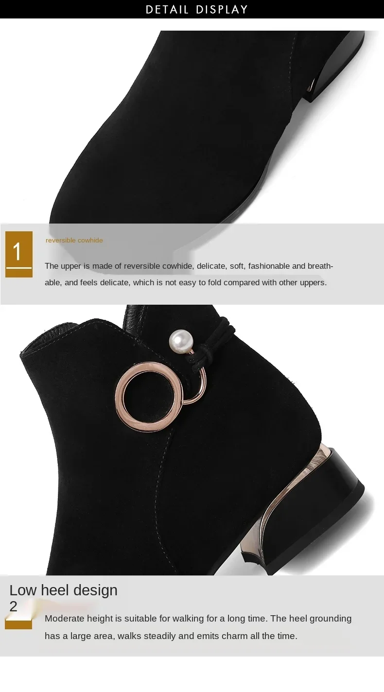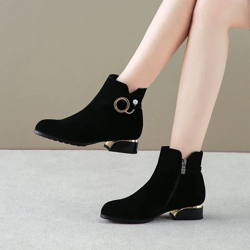 Botines de tacón bajo para mujer, botas cortas de ante de vaca, otoño e invierno, 2024
