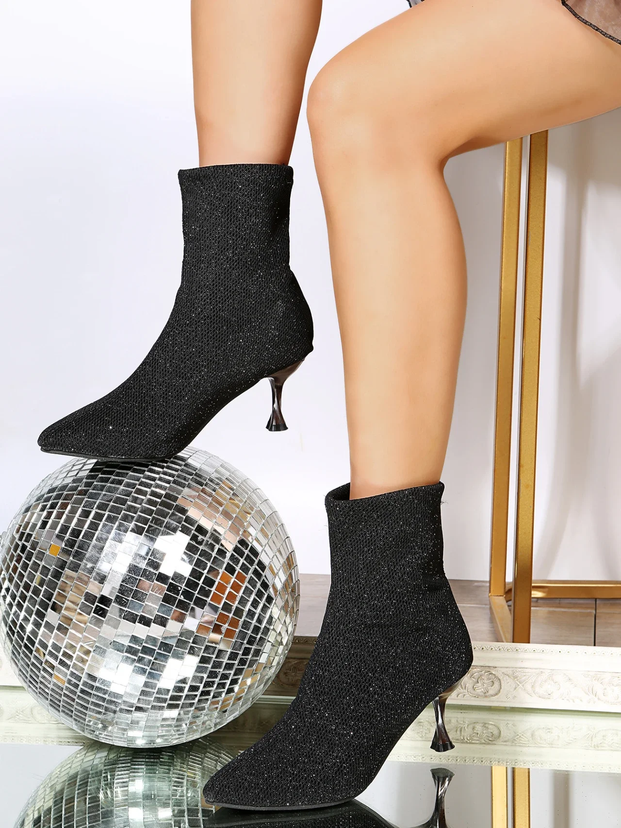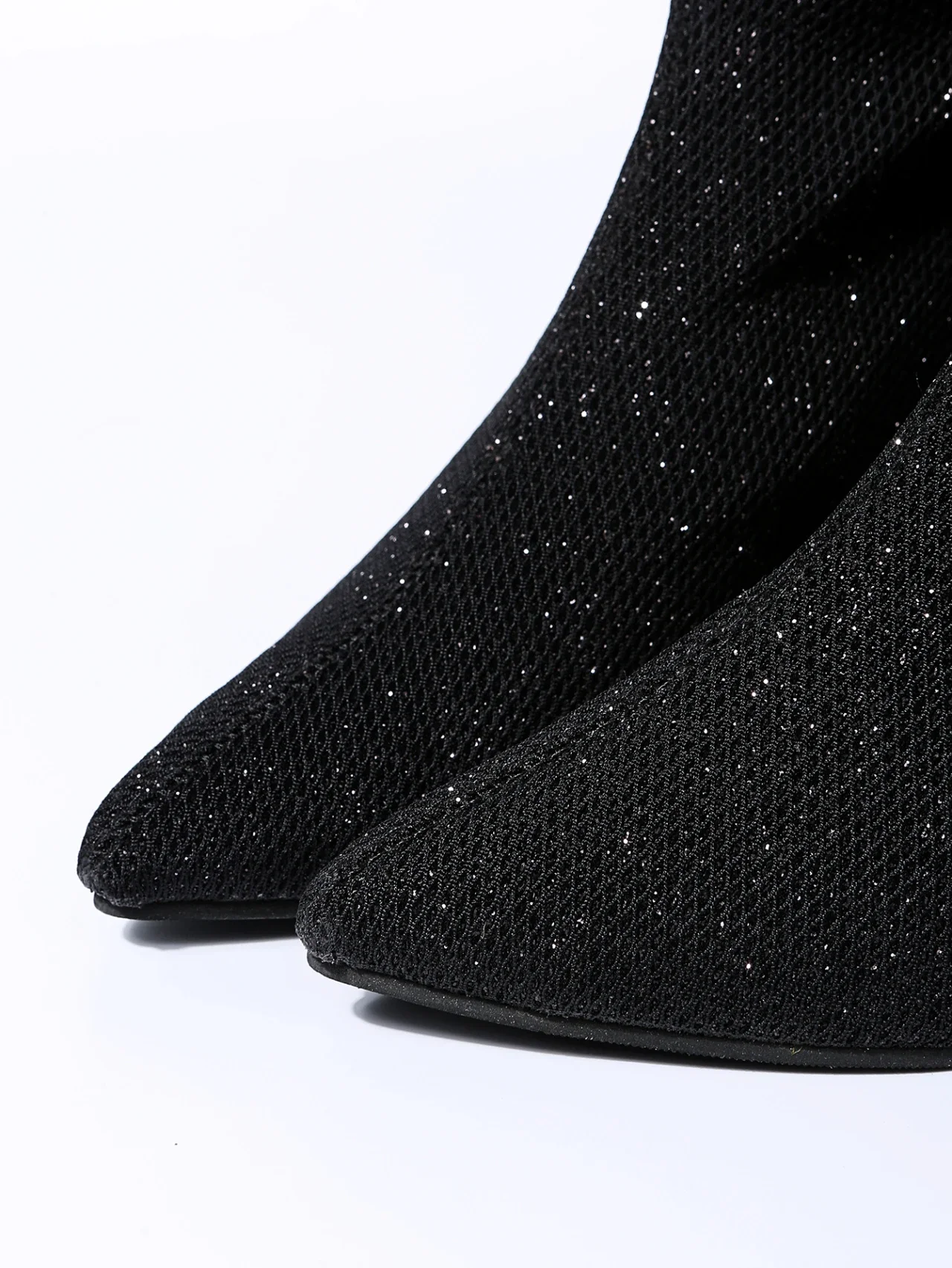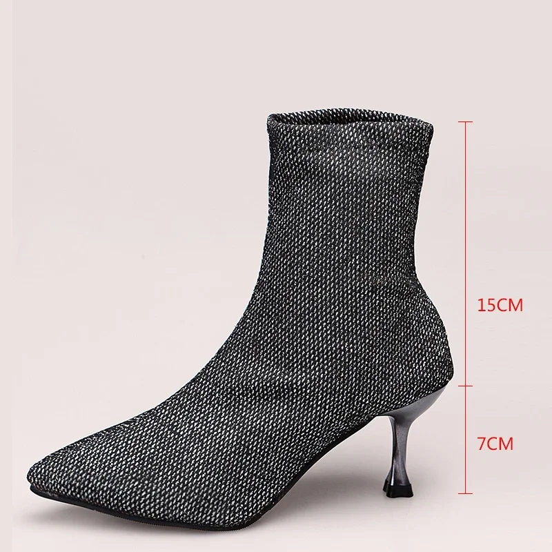 Botines de tacón fino con punta puntiaguda para mujer, zapatos de tacón alto elástico, botas de calcetín para fiesta, Otoño, 2024