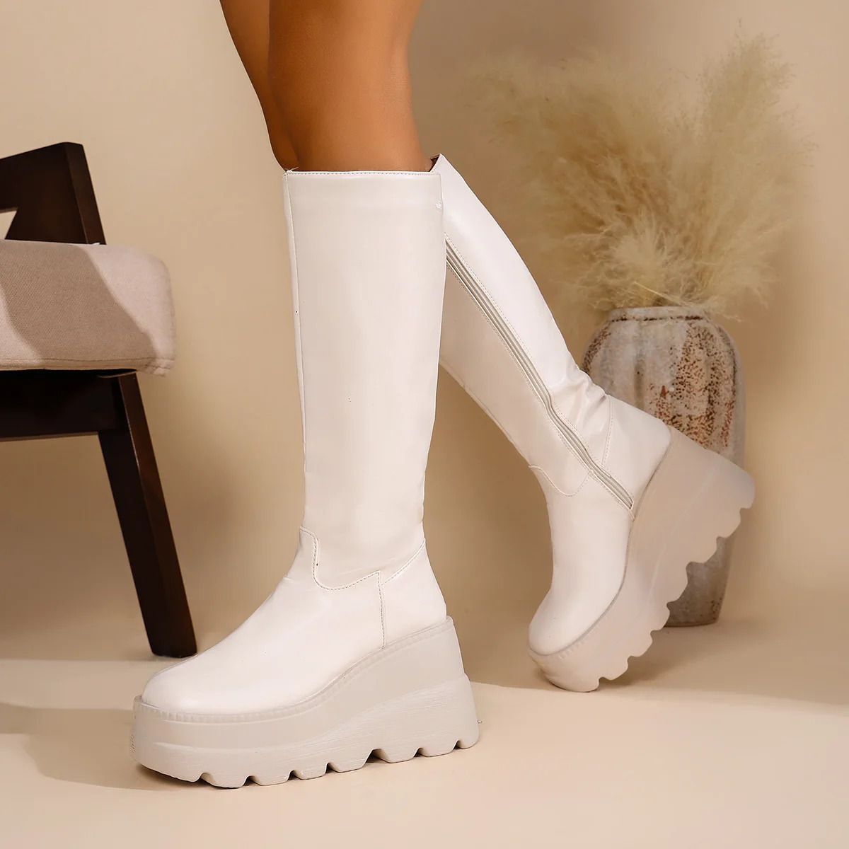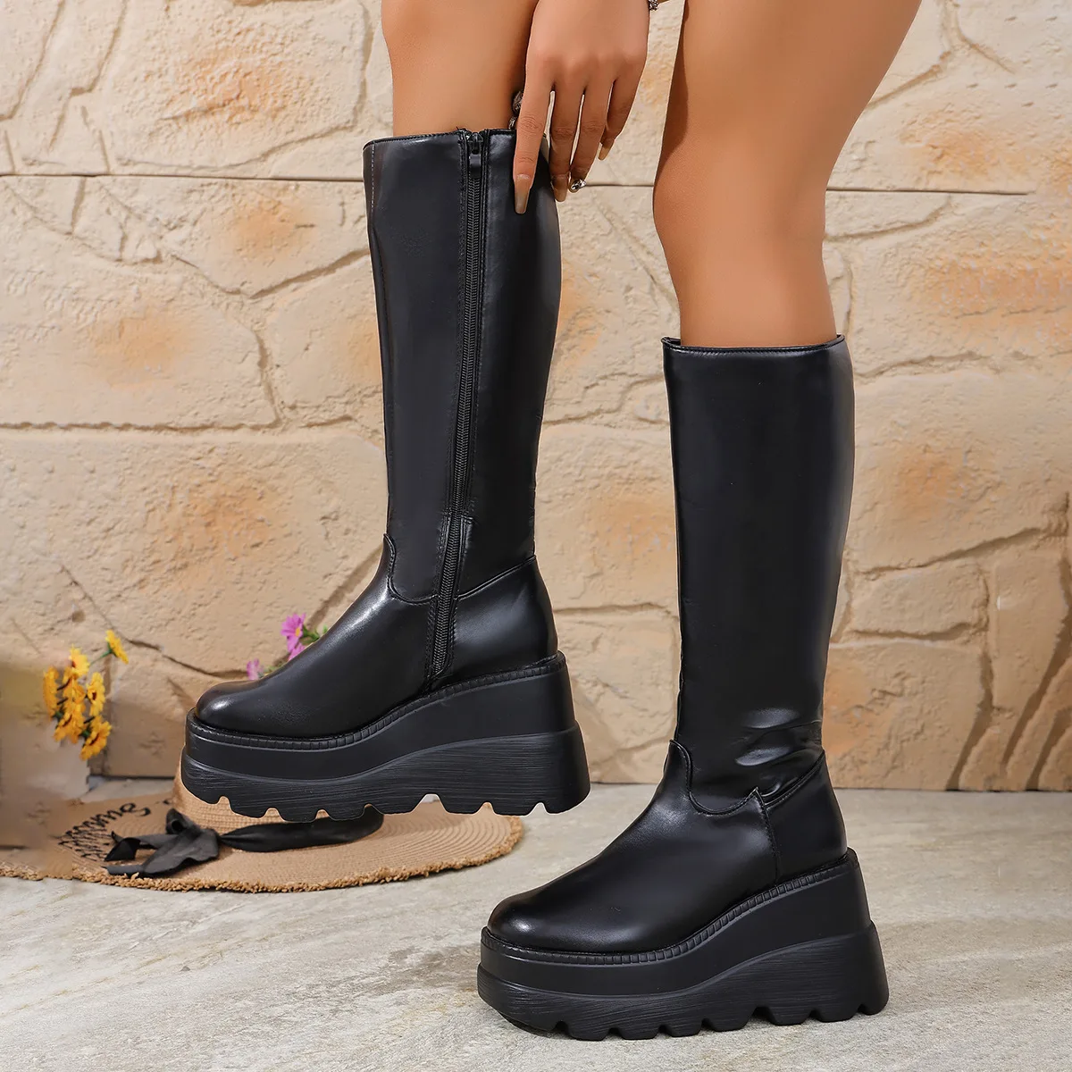 Botines de tacón grueso otoño nuevo Y2K chica picante botas de caballero de motocicleta botas largas hasta la rodilla de cuero PU