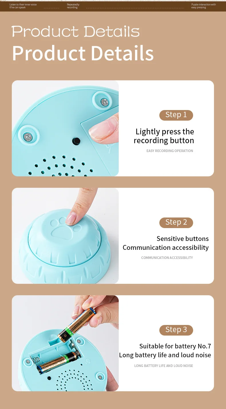 Botón de juguete con sonido para mascotas, comunicación para perros y gatos, juguete educativo para perros y gatos, botón de grabación para mascotas