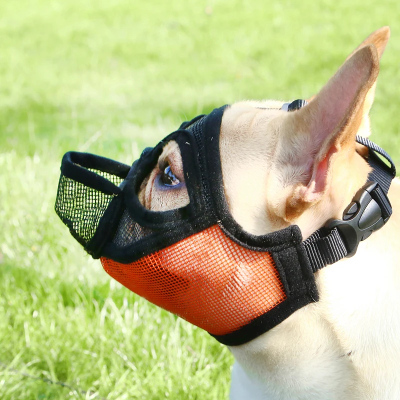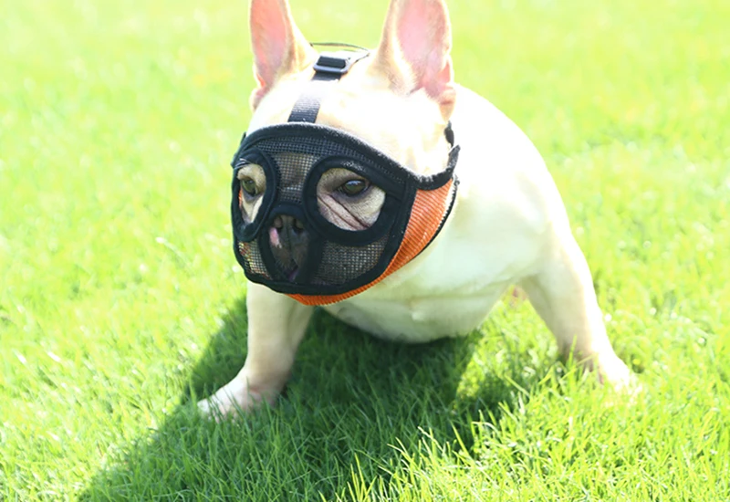 Bozal de malla transpirable para perros, para evitar morder máscara facial, Bulldog francés, Pug, productos de accesorios para Mascotas