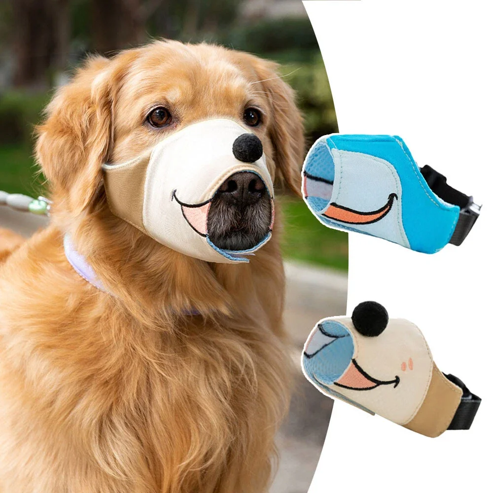 DISEÑO AJUSTABLE: Con una hebilla ajustable en la parte posterior del cuello y una fuerte tira de cinta mágica en la barbilla, lo que permite ajustes personalizados según la circunferencia de la cabeza y los tamaños de la boca del perro para evitar molestias y tirantez.El diseño innovador permite que su perro abra ligeramente la boca y beba agua mientras usa este bozal.