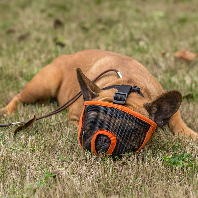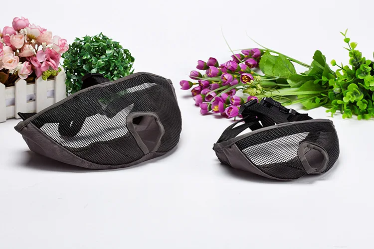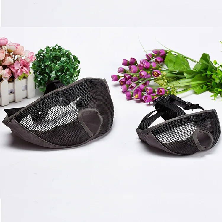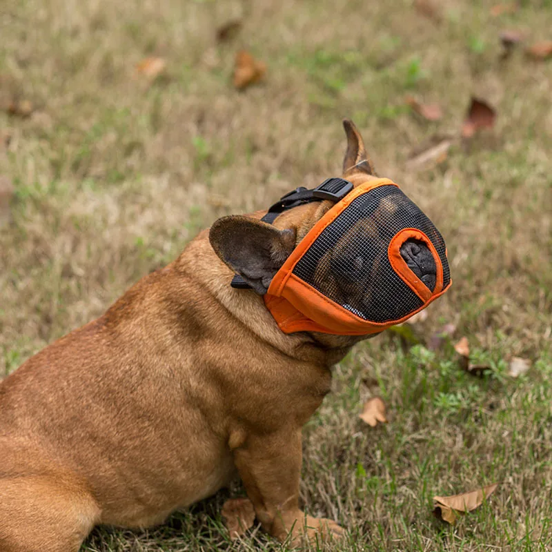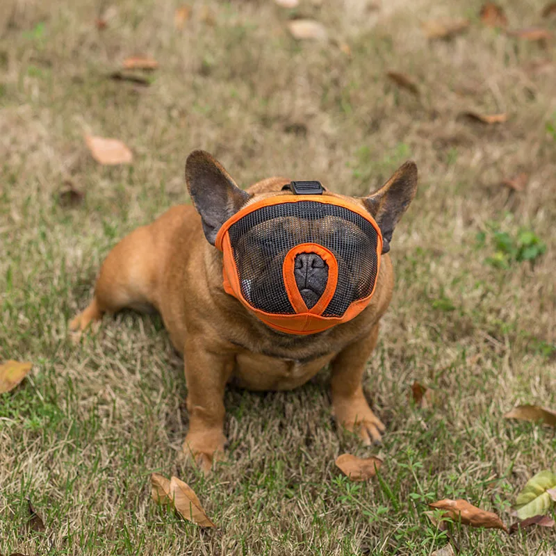 Bozal de perro para boca corta mascota ajustable cubierta de boca de perro transpirable máscara de ojos Anti ladrido mordida máscara de bozal de malla para Bulldog Pug