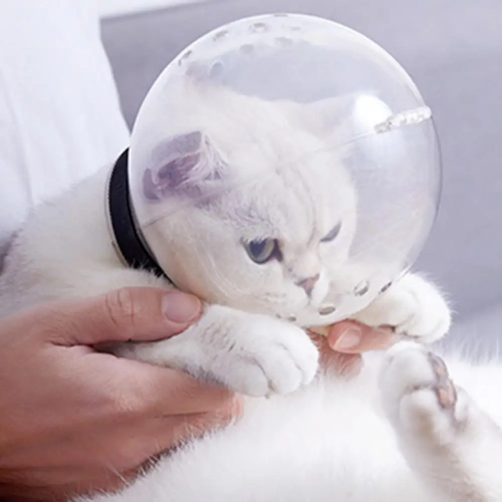 Caracterizada por un diseño transparente en forma de bola, la capucha espacial para gatos puede evitar que las mascotas laman heridas después de la cirugía o muerdan a los cuidadores durante el aseo quirúrgico. Y también puede proteger eficazmente la cabeza del gato y evitar que el gato muerde otros de manera efectiva.