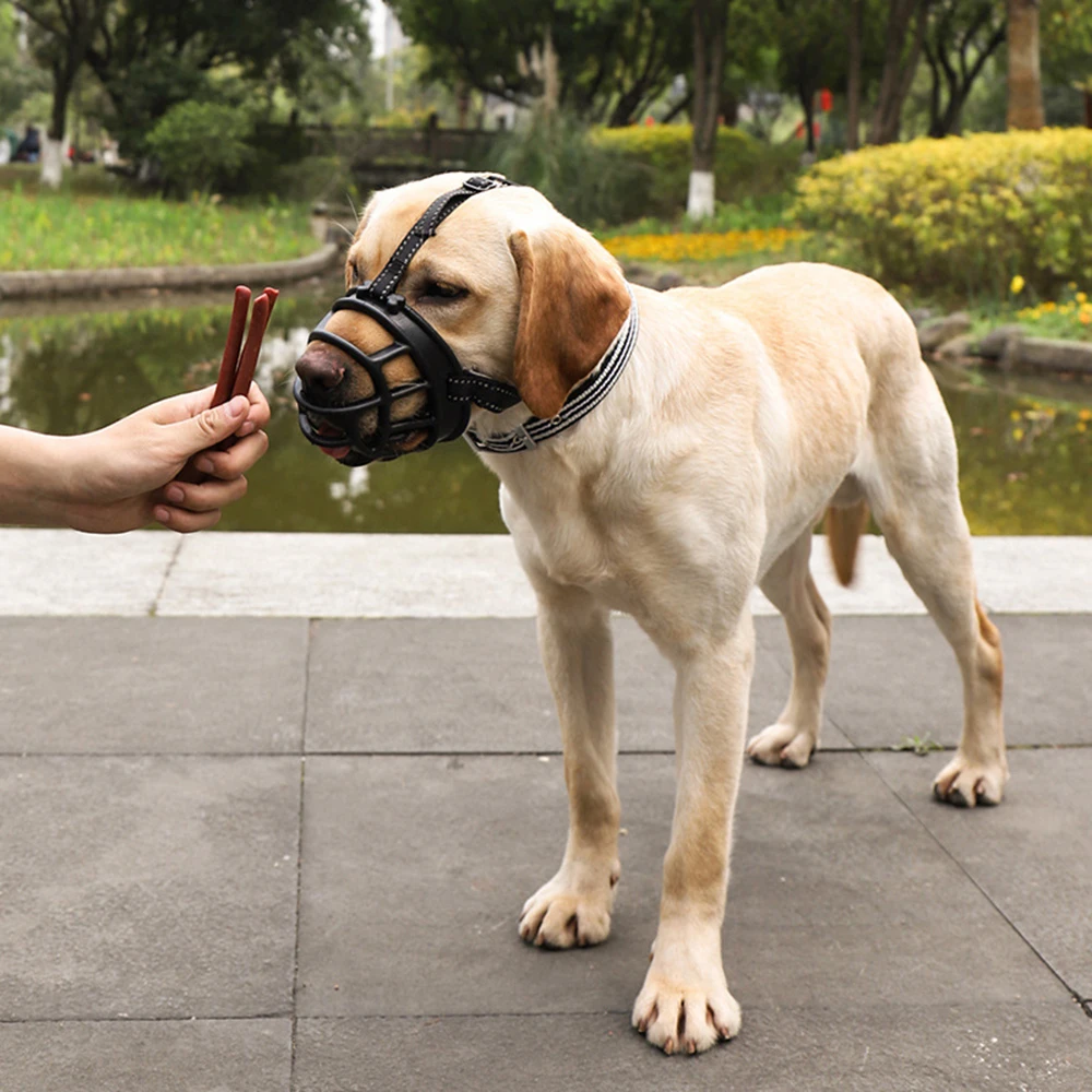 Bozal de silicona duradero para perros grandes, máscara reflectante para cesta para mascotas para perros medianos y grandes, bozales antimordidas de seguridad, accesorios para mascotas