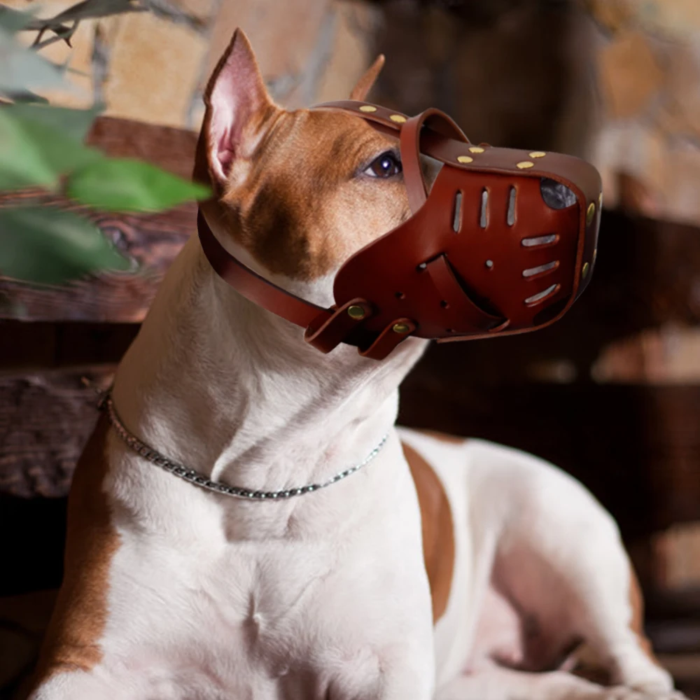 Rompecabezas para perros, mascarilla de cuero ajustable para la boca de mascotas, antifuerza, mordedura, musero para masticar para perros pequeños y grandes Pitbull, entrenamiento de productos para mascotas