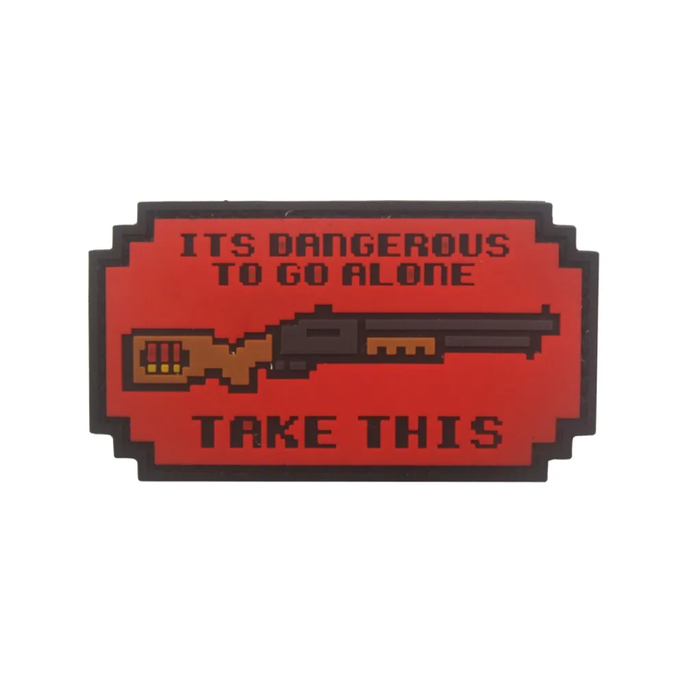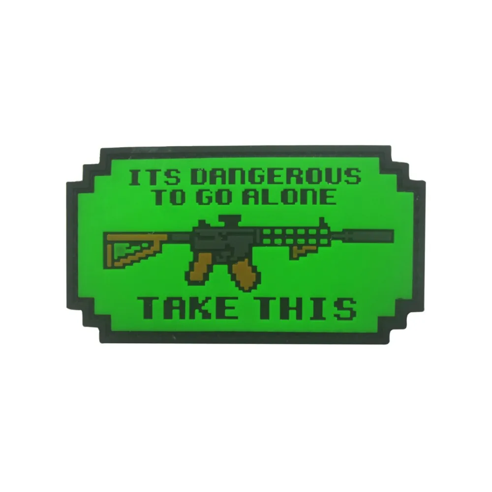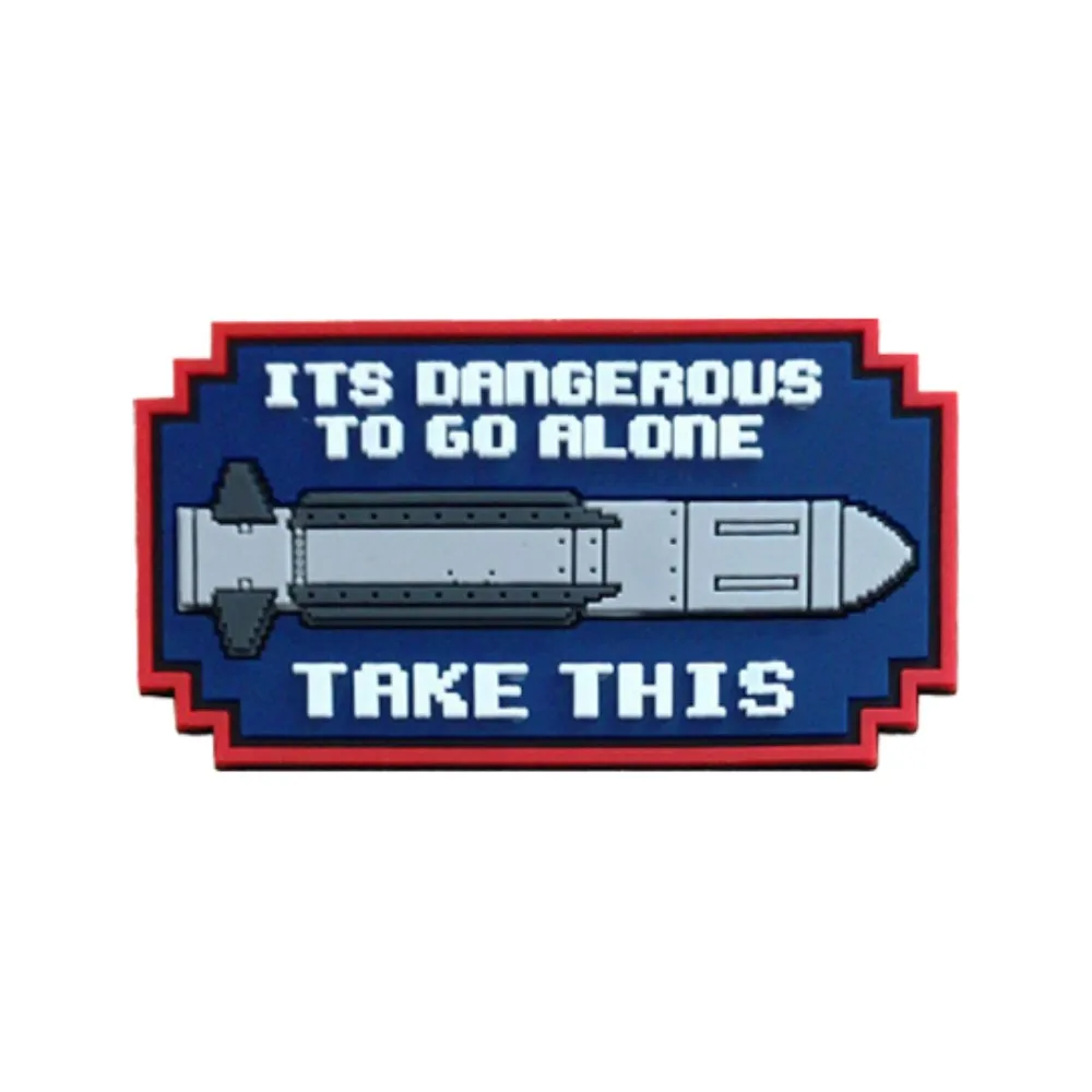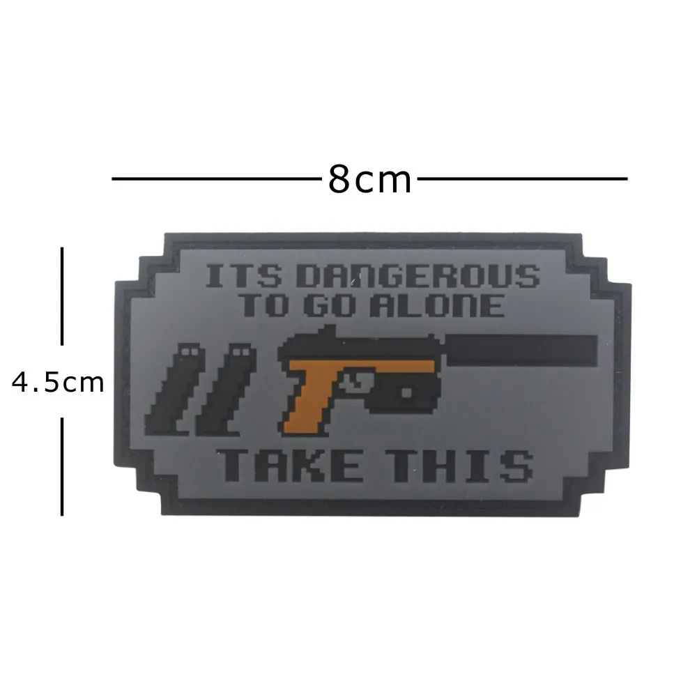 Nombre del producto: Brazalete con parche de PVC Es peligroso ir solo insignia militar tomar este aplique de parches decorativos tácticos para armas