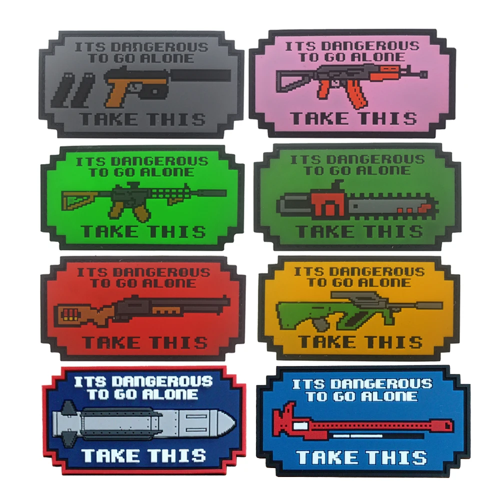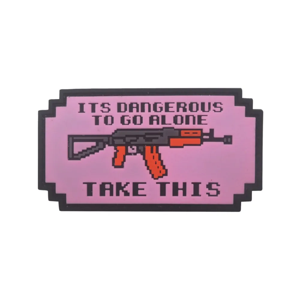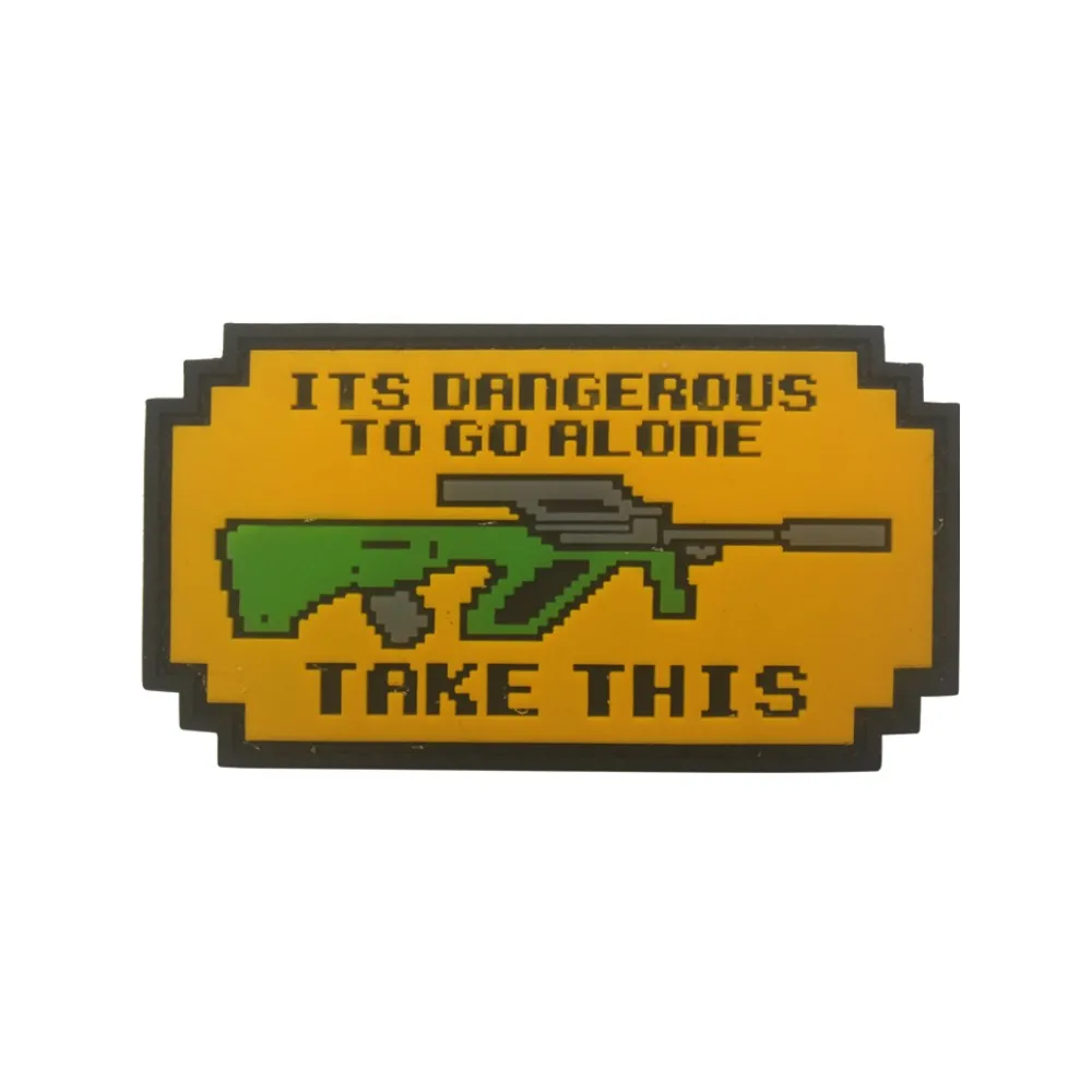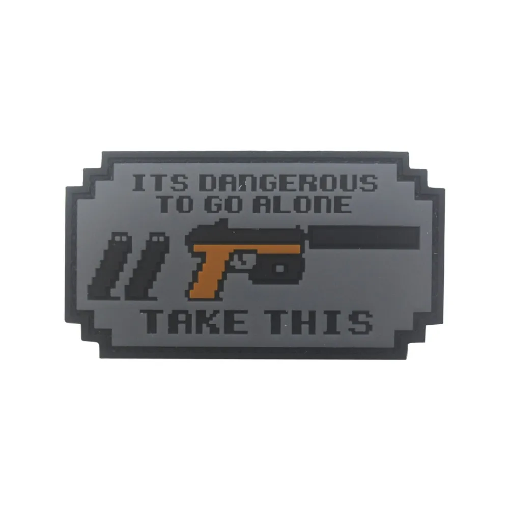 Nombre del producto: Brazalete con parche de PVC Es peligroso ir solo insignia militar tomar este aplique de parches decorativos tácticos para armas