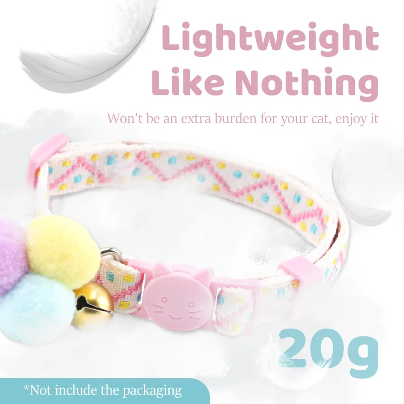 * 【Con pompones 】: la decoración de los pompones le da al collar de gato más carácter y también puedes hacer tú mismo los accesorios.