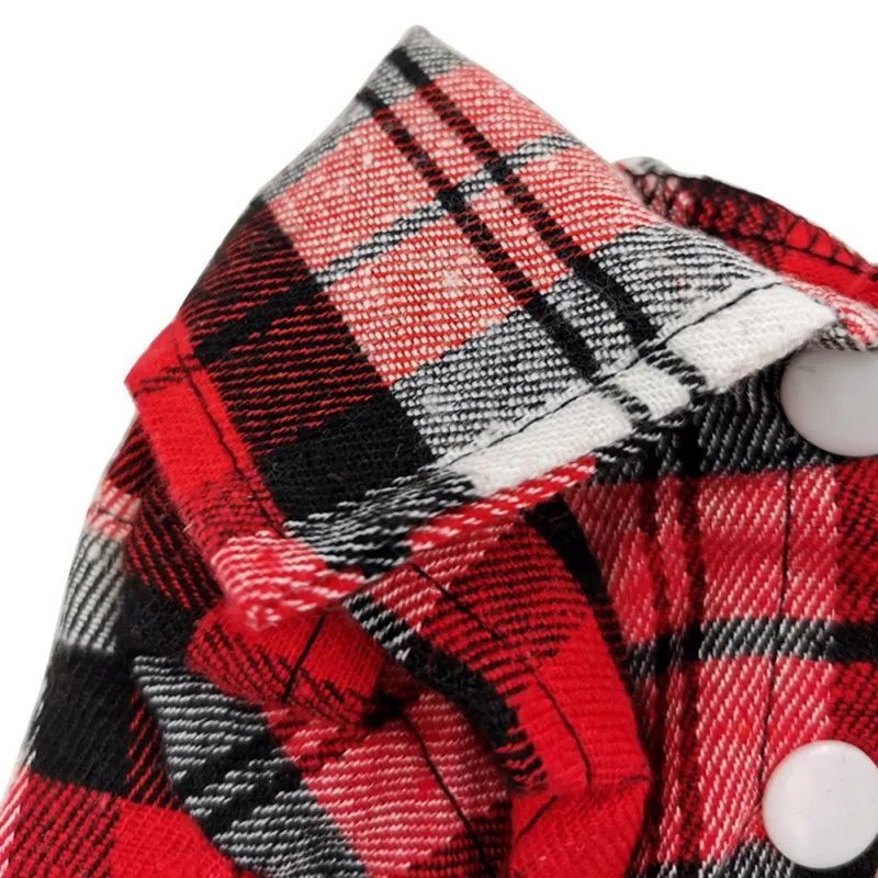 4. Fácil de usar y limpiar: esta camisa a cuadros para cachorros viene con botones, por lo que no tendrá que preocuparse de que la camisa se caiga durante el transporte; puede vestir rápidamente a su mascota y posponerla con el diseño de botón, muy conveniente de usar, una gran camisa de vestir con botones navideños para que su mascota la use.