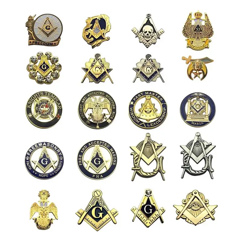 Nombre del producto: Broche Mason antiguo de libertad de oro de 25mm, insignias de alfileres de solapa mágicos para regalos con embrague de mariposa
