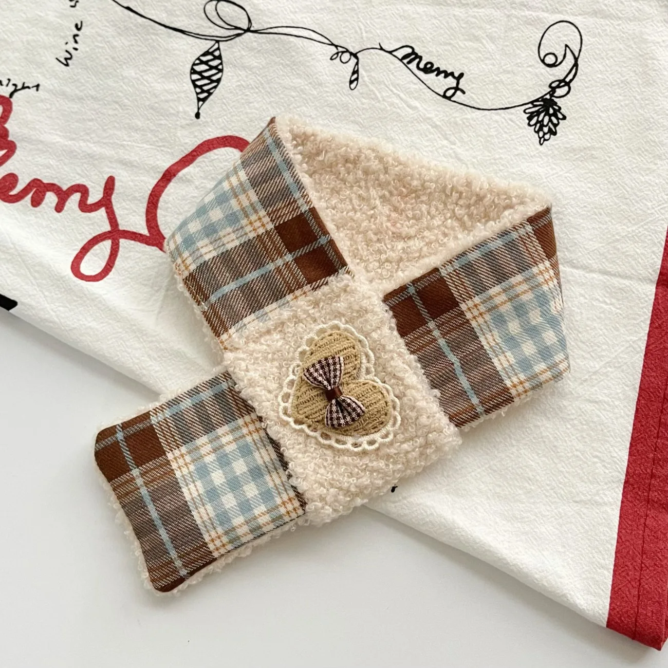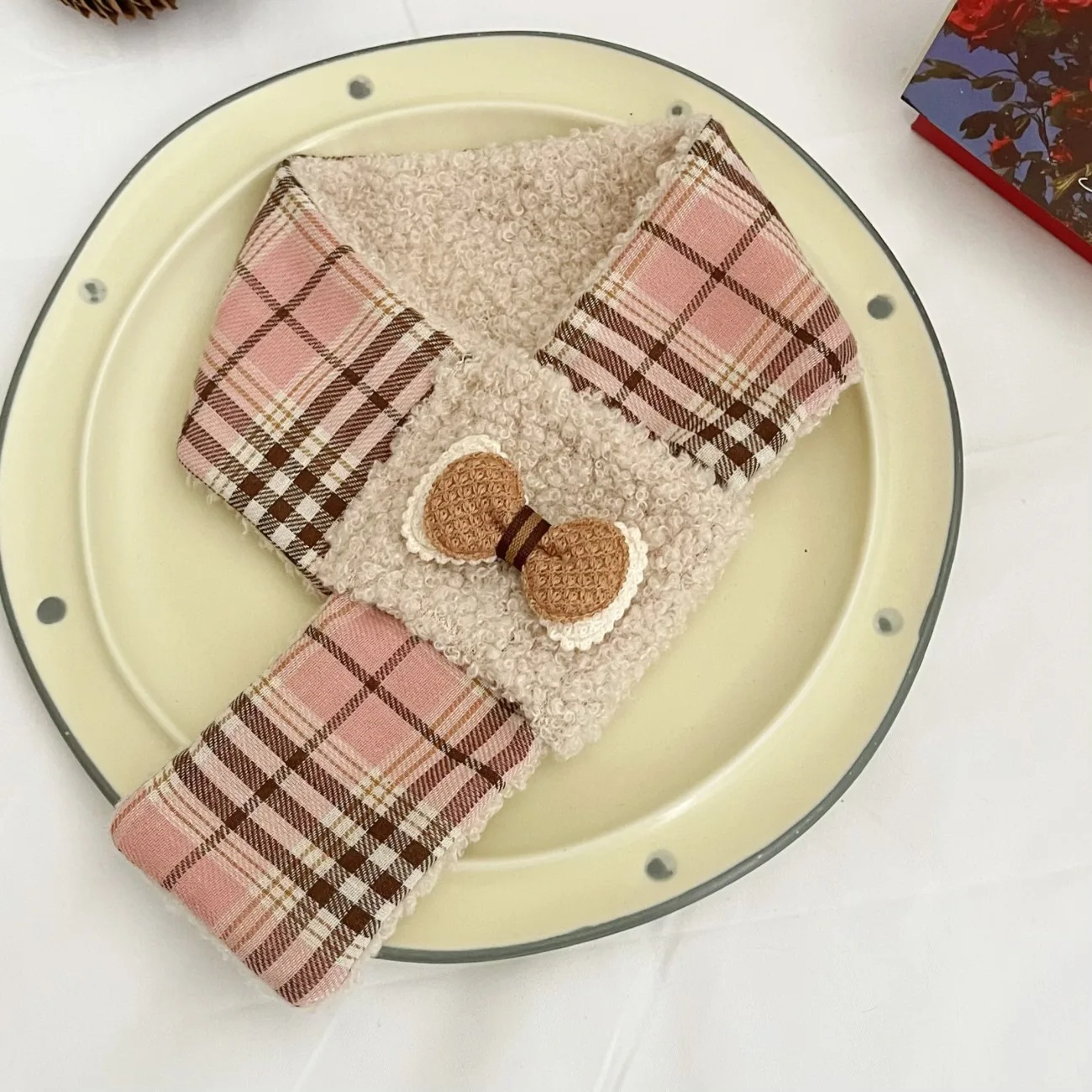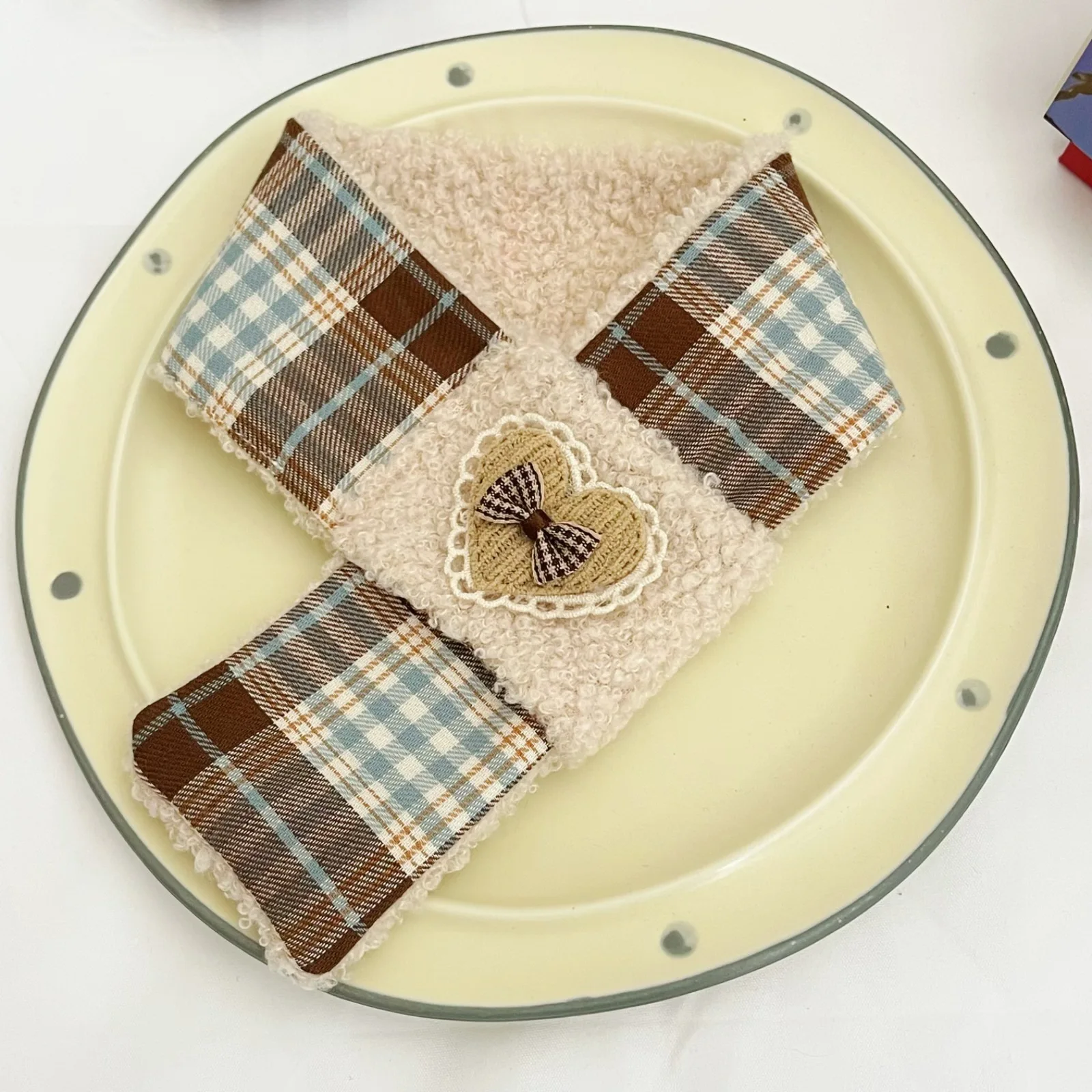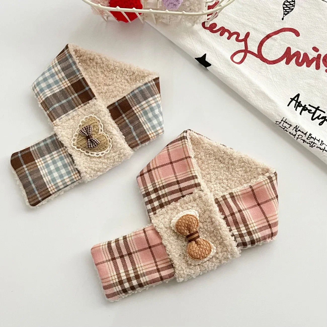 Bufanda a cuadros para mascotas, bufandas de piel de cordero para perros y gatos, bonito accesorio para Collar con lazo, bufandas para perros, ropa para cachorros y gatos, ropa para perros pequeños