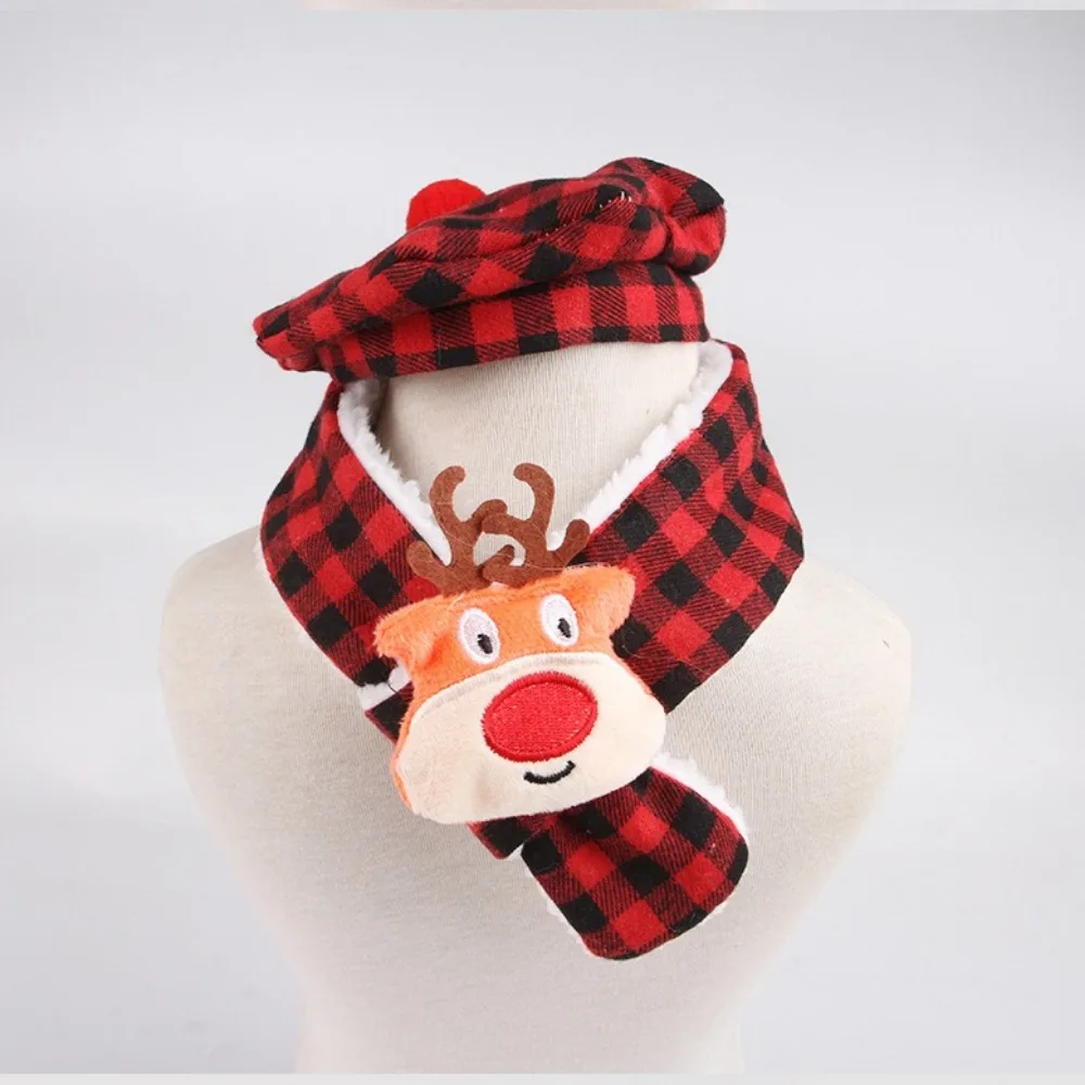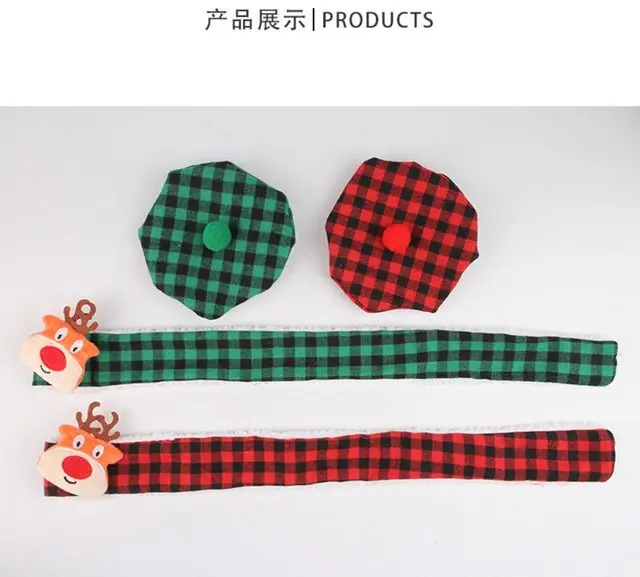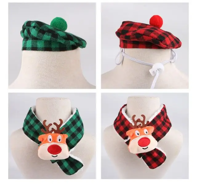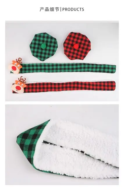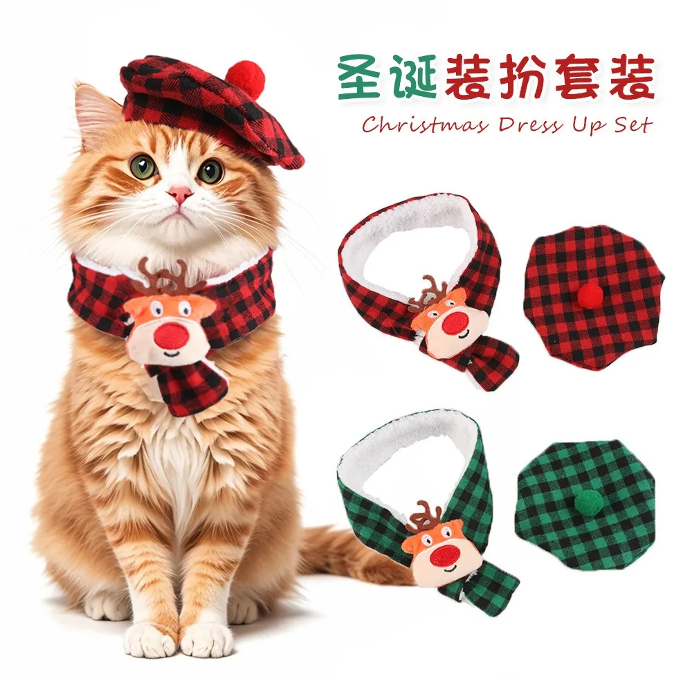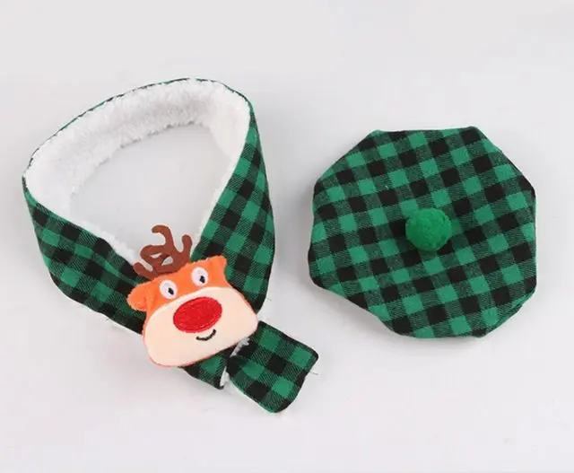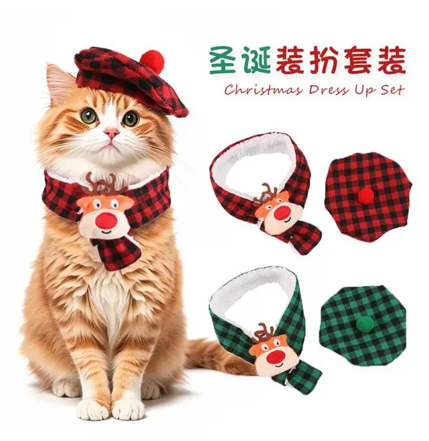 Bufanda a cuadros de otoño e invierno para mascotas y toalla de baba, bufanda triangular de doble capa con sombrero de Navidad, accesorios para cachorros para perros pequeños