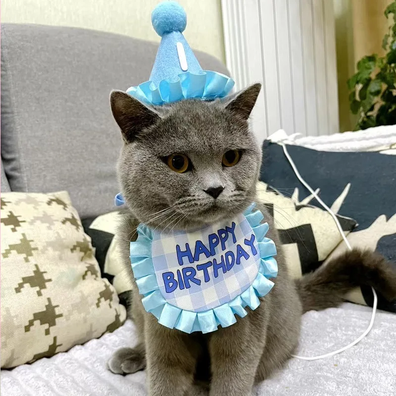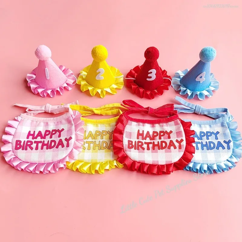 Gato perro cumpleaños babero y sombrero de fiesta Mini perrito gato ajustable Bandana bufanda mascota cumpleaños traje cachorro suministros