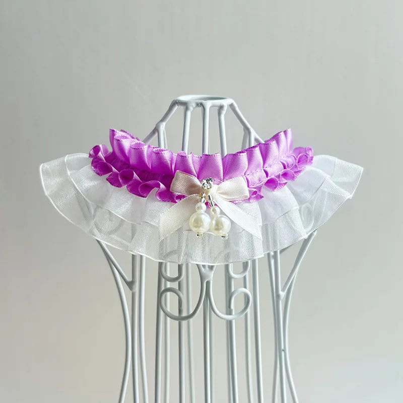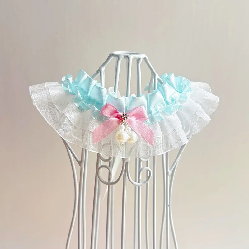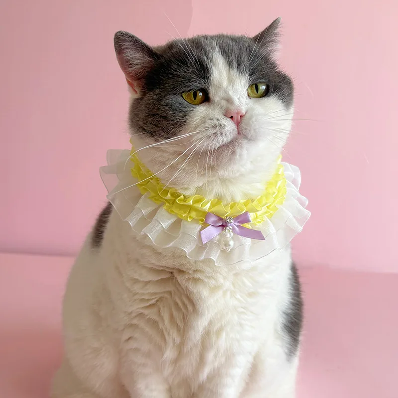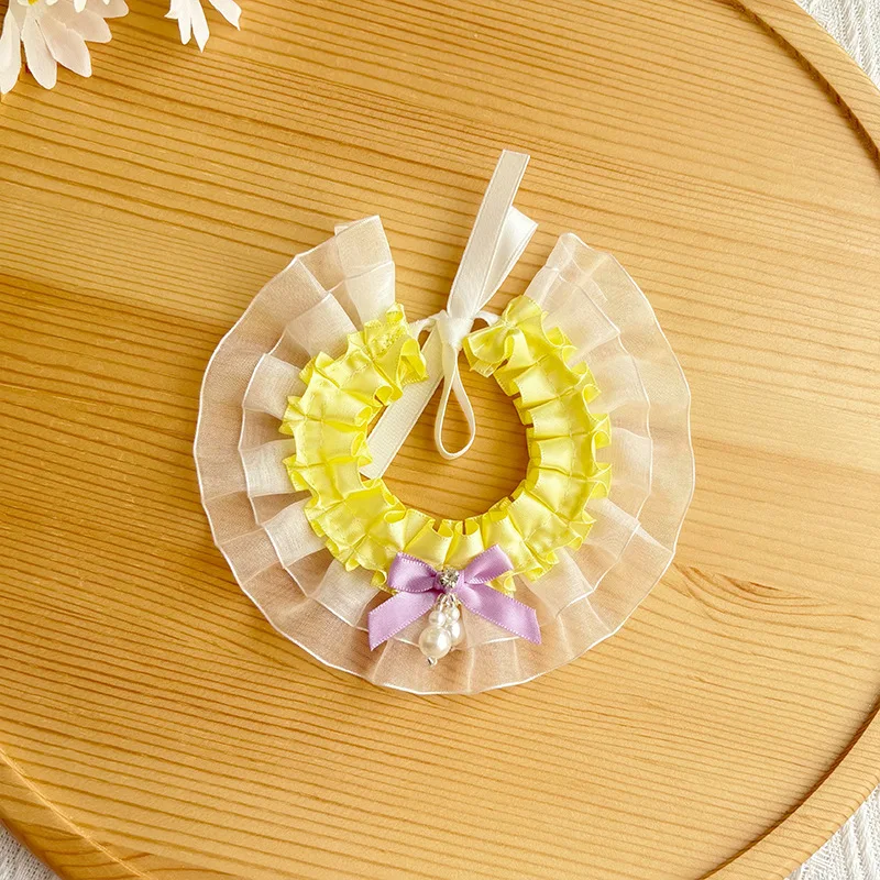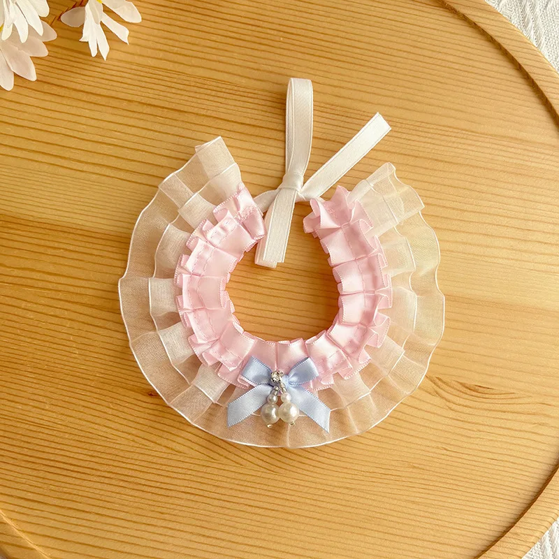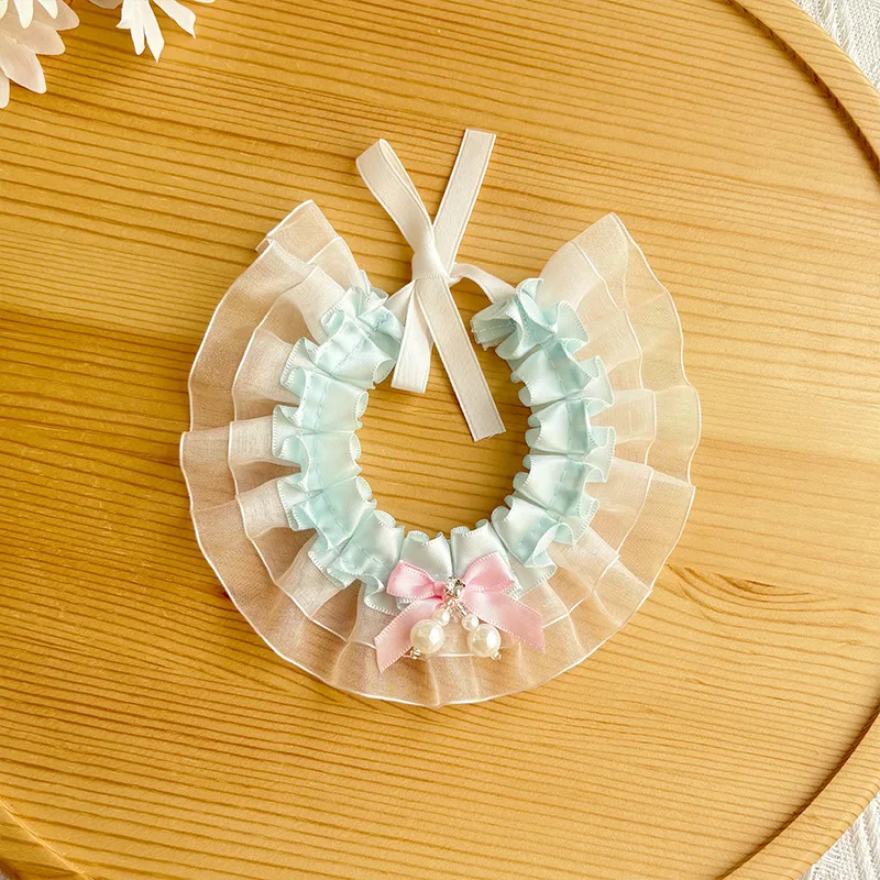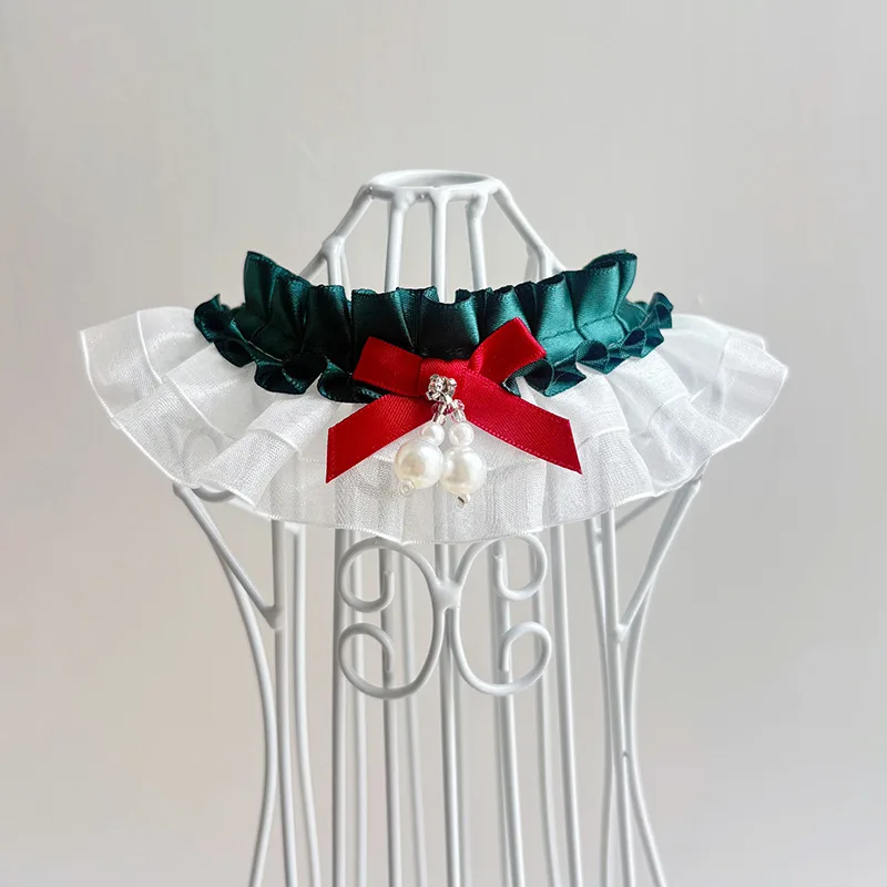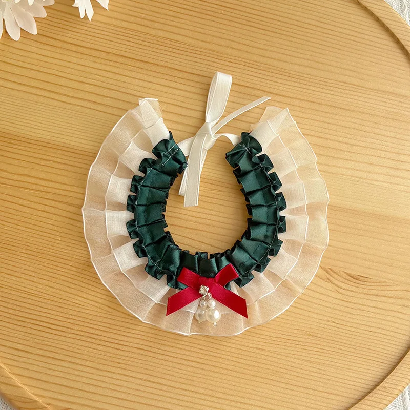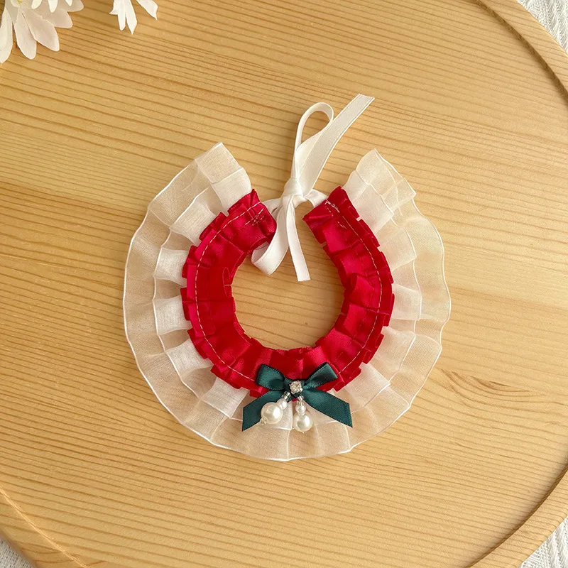 Bufanda de encaje navideña para mascotas, bufanda con baba, bufandas para gatos, bufanda triangular de peluche, collar de malla de viento de princesa, ropa para perros pequeños
