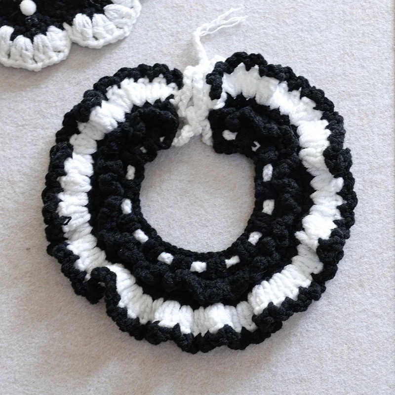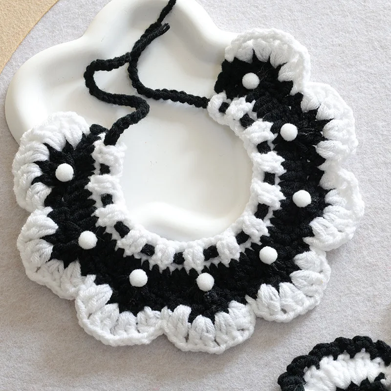 Bufanda para Gato, Collar de bola de lana tejido a mano, chal negro para mascota, traje bonito para gatos, perros, babero, accesorios para cachorros pequeños