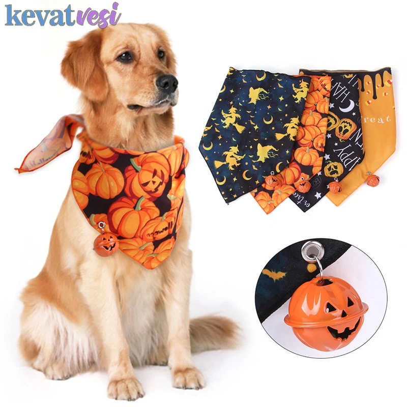 Bufanda para mascotas de Halloween, Bandana para perros y calabazas con campana, toalla triangular divertida para perros y gatos, Baberos para cachorros y brujas, suministros para mascotas de Halloween
